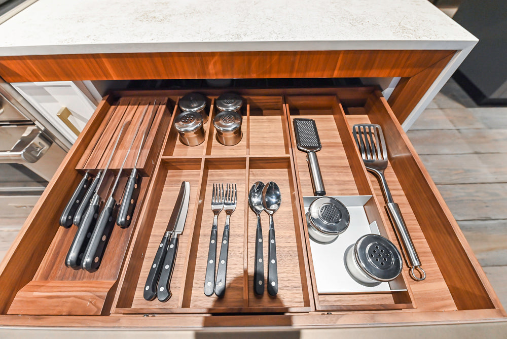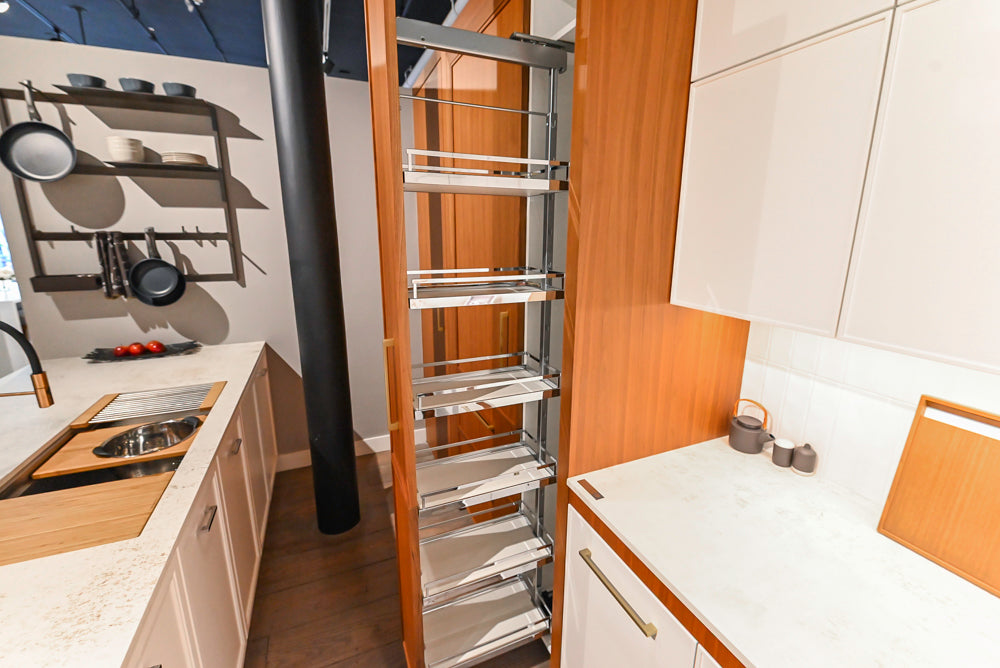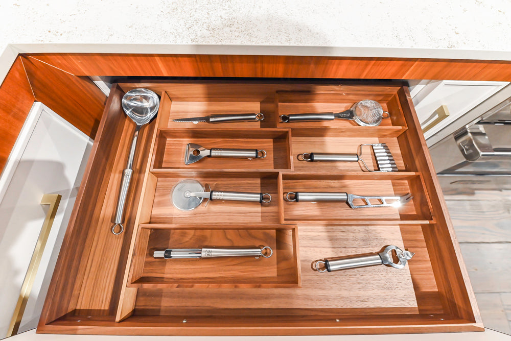 Sleek, contemporary, and designed for performance, this Aster Cucine kitchen combines refined Italian craftsmanship with high-end functionality. The striking two-tone cabinetry creates a bold modern aesthetic, while expansive Dekton countertops deliver both beauty and exceptional durability—resistant to heat, stains, and scratches.