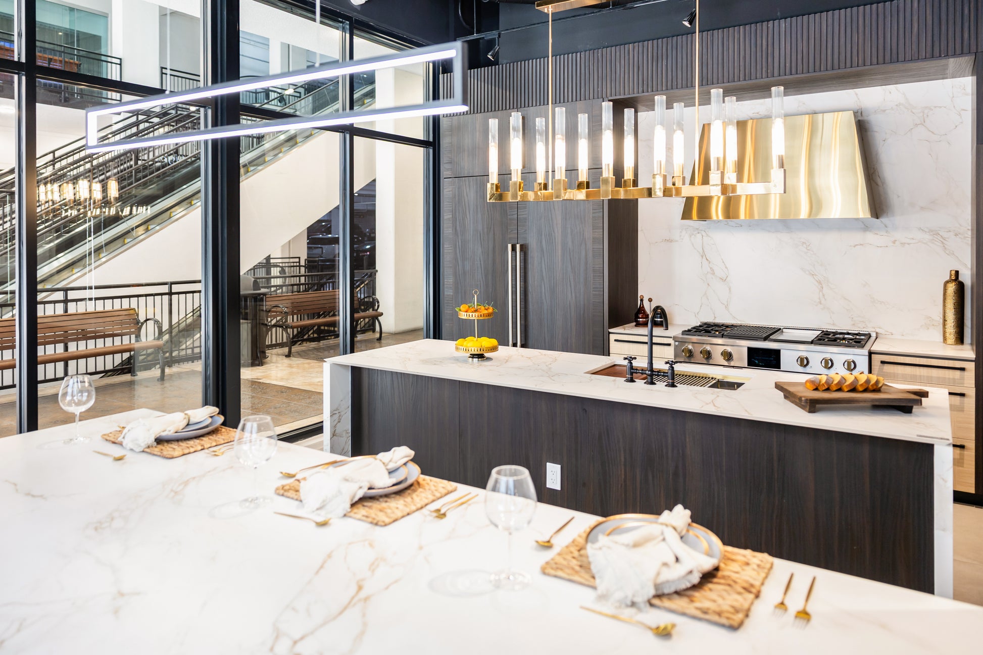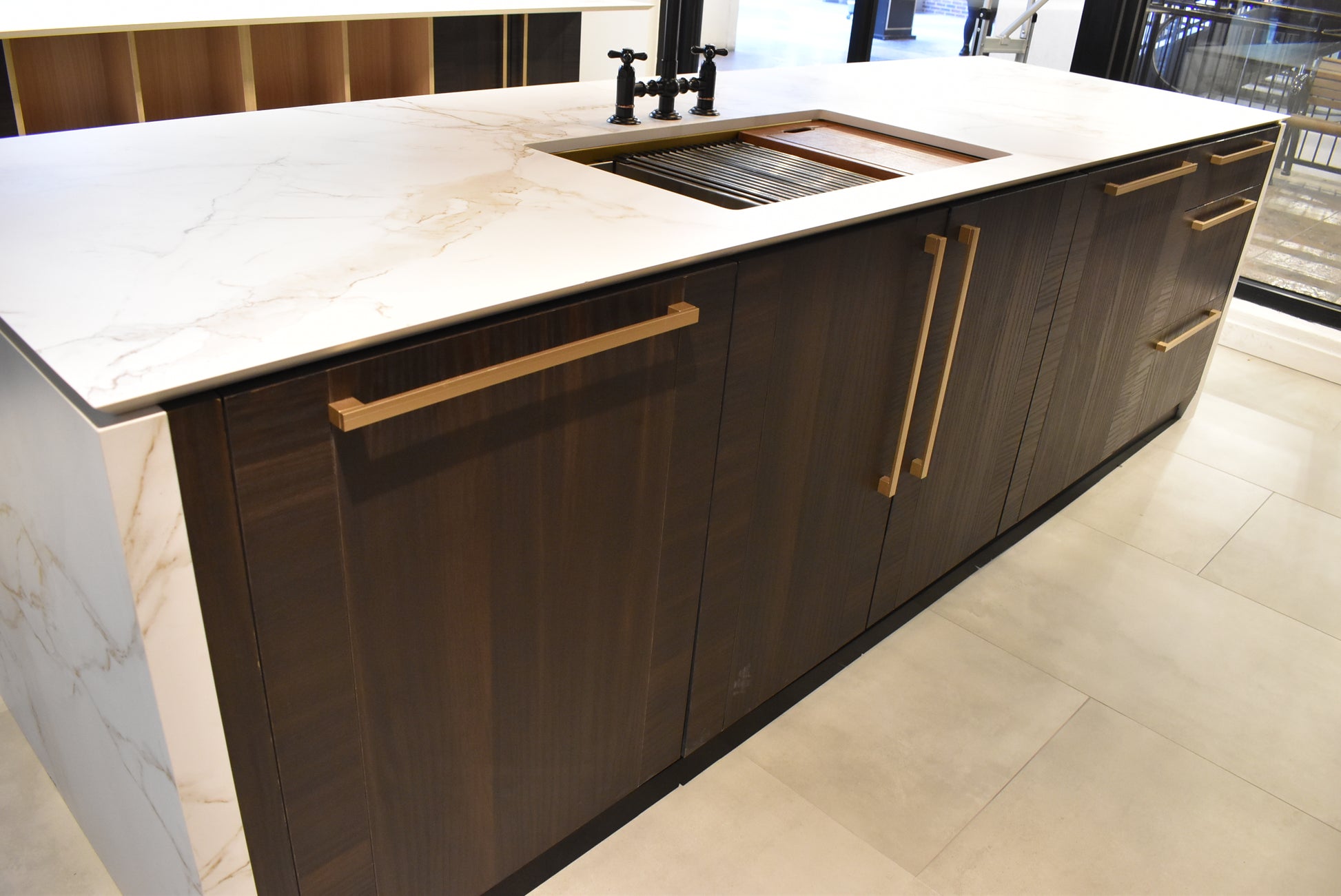 Refined and ready to impress, the Azzurri Casa Transitional Kitchen is a perfect fusion of modern sophistication and timeless charm. At its heart is a showstopping double waterfall island paired with ultra-durable Dekton countertops—offering both beauty and resilience. This kitchen also includes a premium Monogram appliance package with a retail value of over $60K, delivering professional-grade performance for the serious home chef.