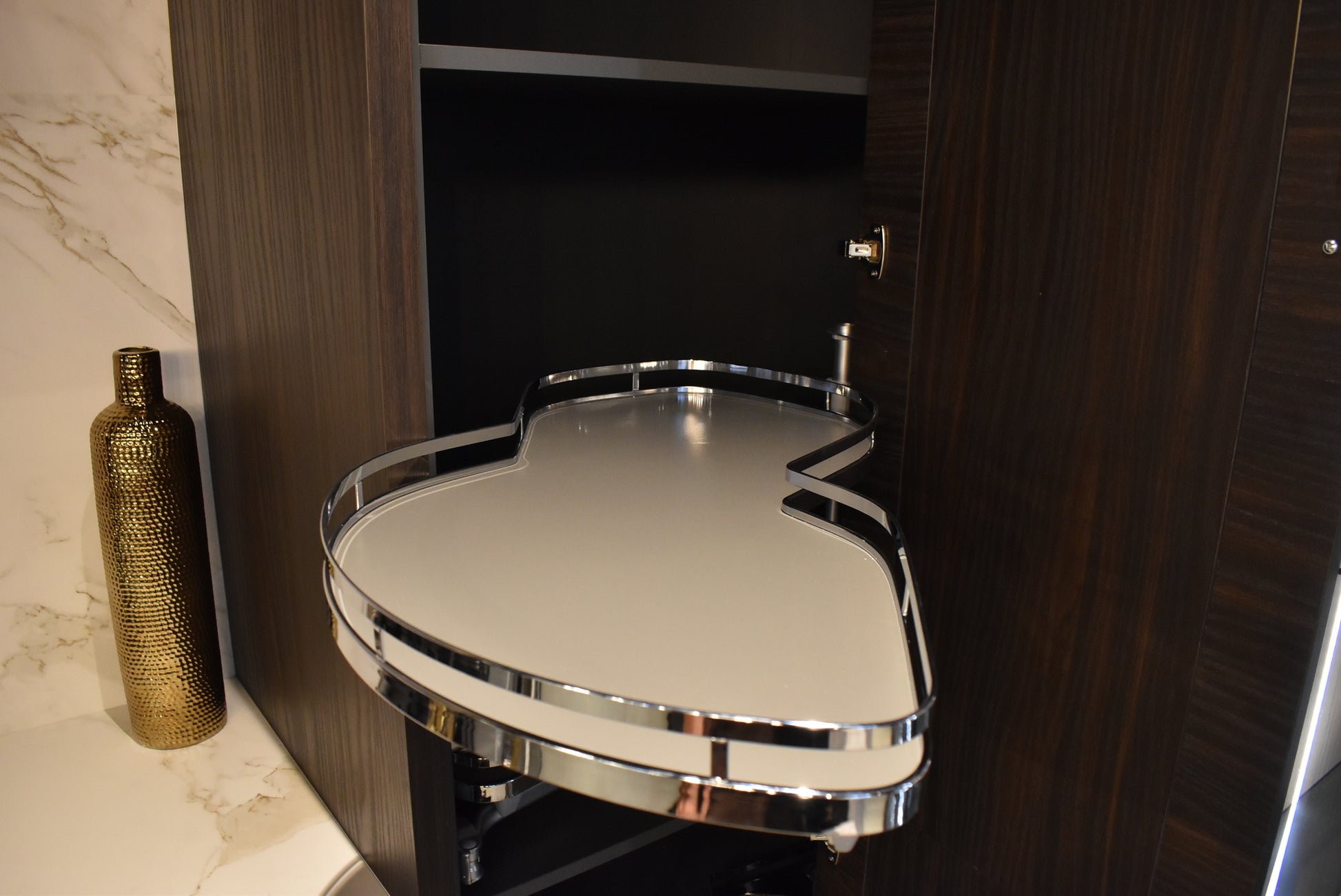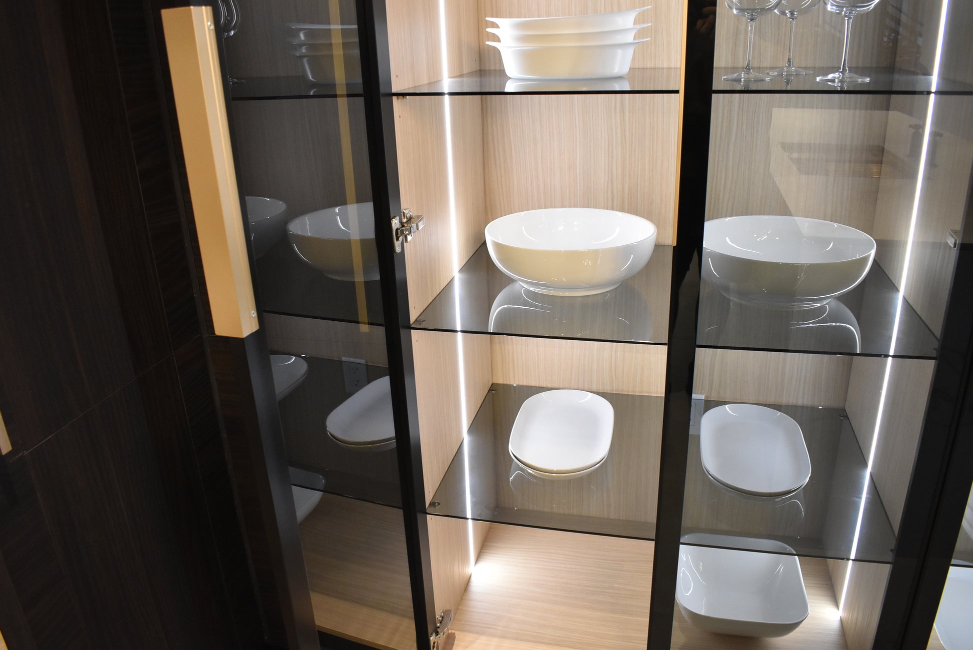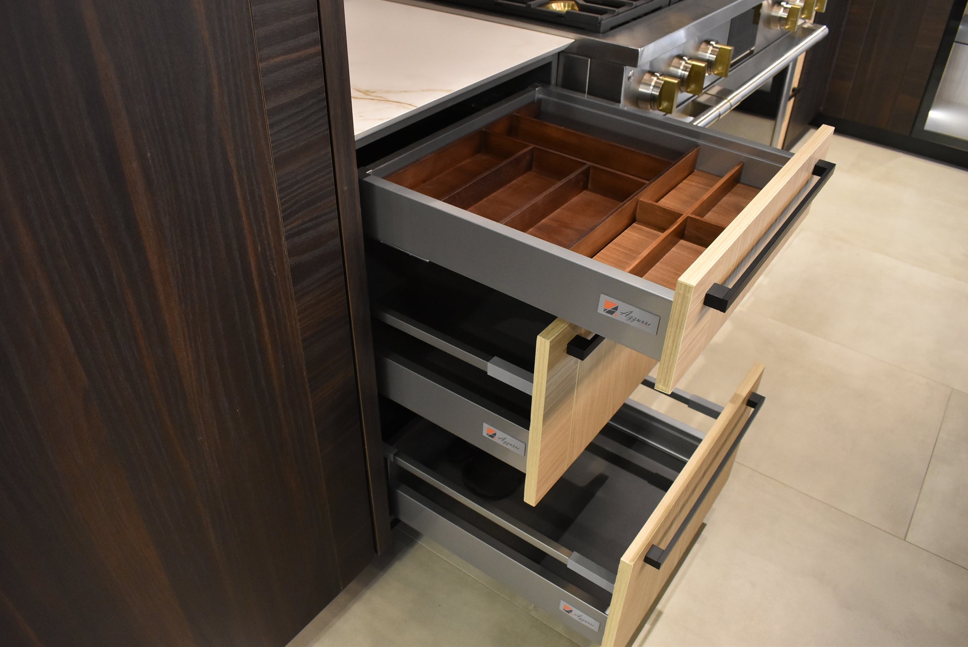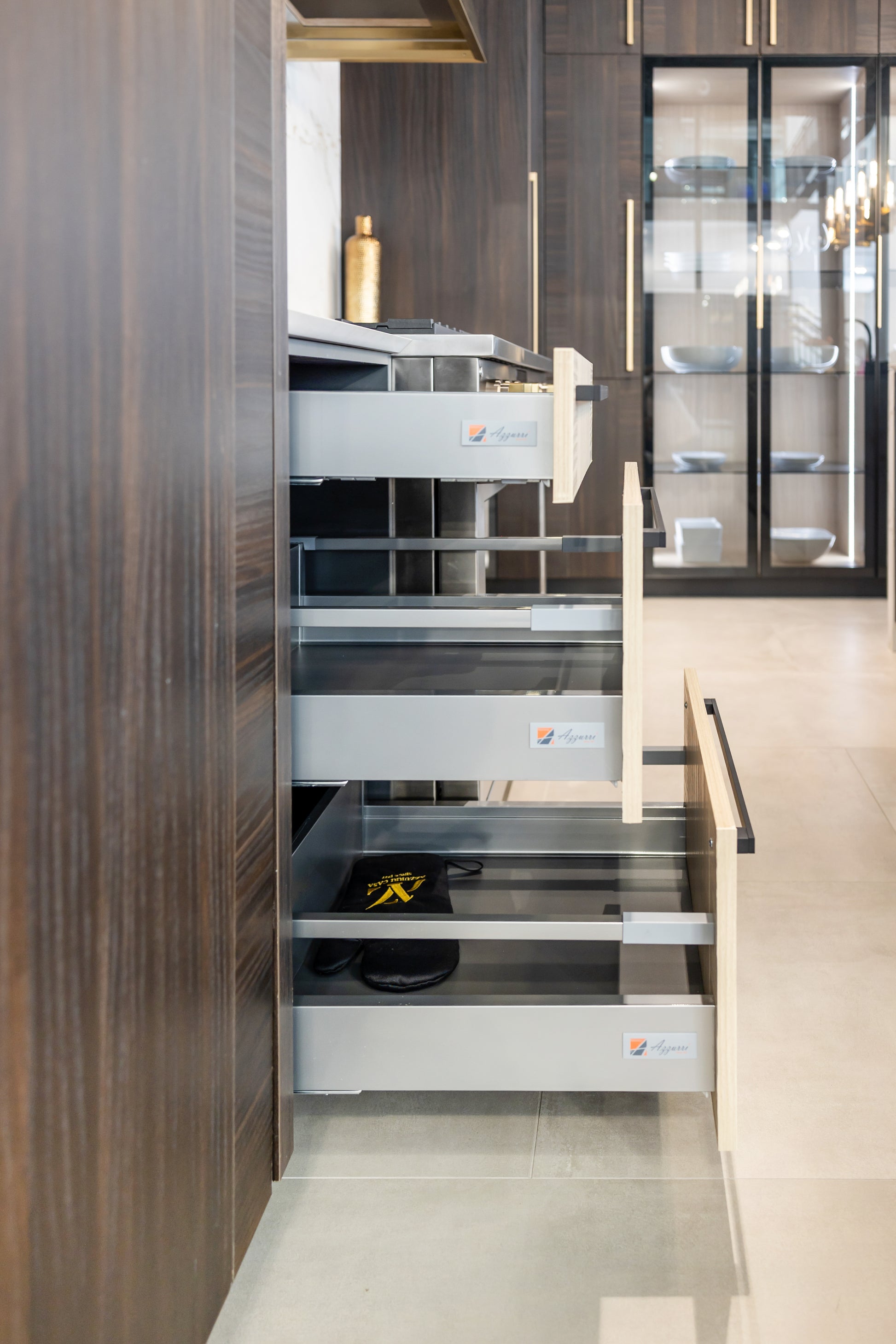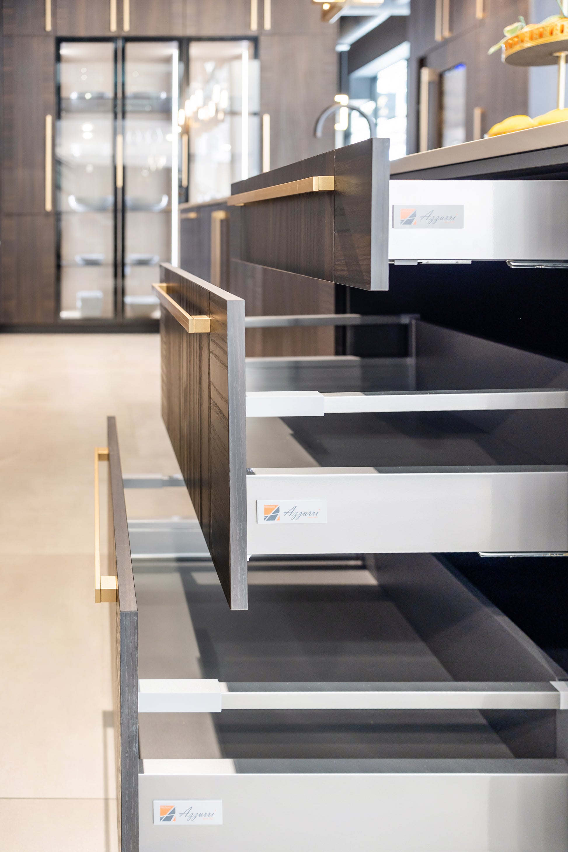 Azzurri brings 90 years of family tradition to its luxury custom builds. Azzurri’s modern designs are European-inspired and made in the U.S.A. Azzurri brings a sophisticated, sleek style straight to your project. The premier European designs are made in the U.S.A. The designs couple luxury with functionality. Meaning, customers can enjoy custom designs to utilize space, along with innovative electronic devices to automatically open cabinet doors.