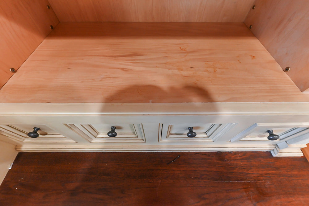 ✔ Christopher Peacock craftsmanship with hand-painted cream cabinetry