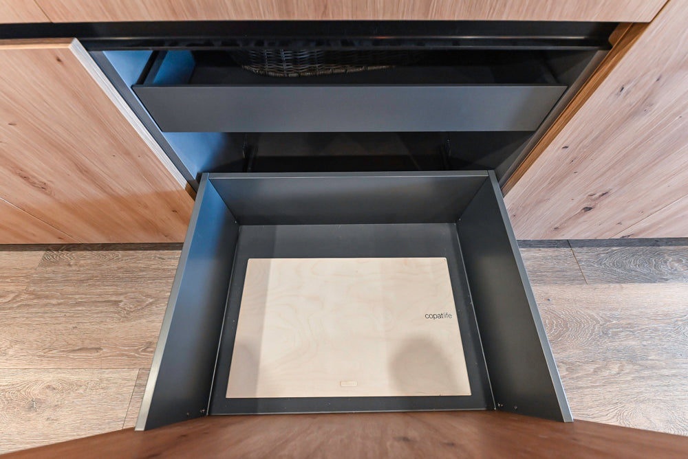 Thoughtfully crafted cabinetry offers ample storage for glassware, barware, and small appliances, while the integrated Wolf oven enhances both form and function. Whether used as a secondary kitchen space, bar, or culinary prep area, this piece embodies Copatlife’s signature blend of Italian design and everyday practicality.