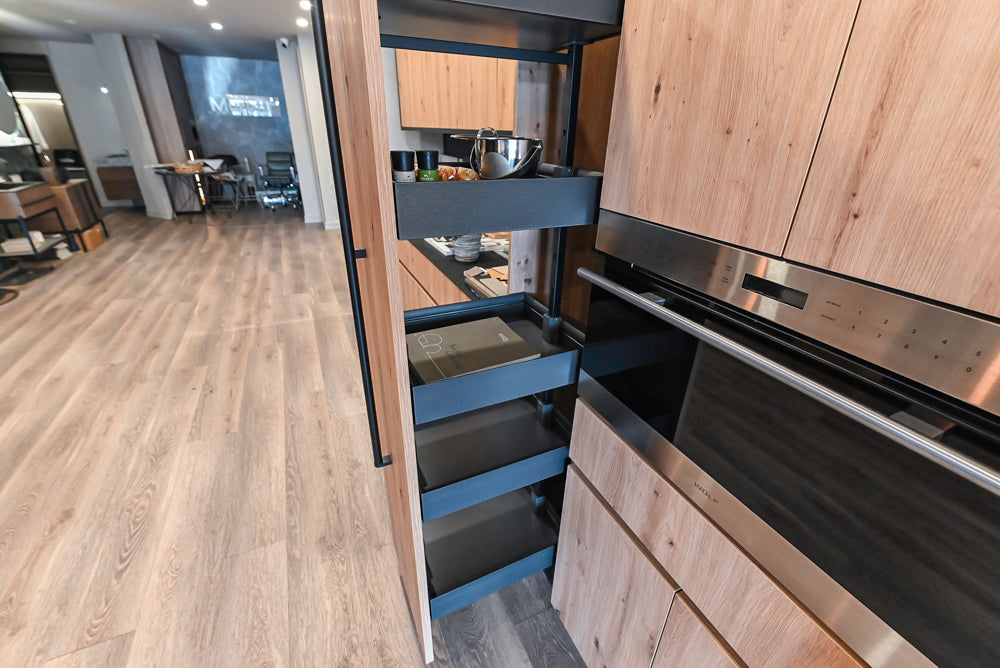 Refined and functional, this Copatlife Modern Dry Bar features a beautifully textured wood-look finish (Alpe Wood) that brings warmth and sophistication to any contemporary space. Designed with clean lines and sleek detailing, it pairs striking modern aesthetics with the performance of a Wolf microwave oven, creating a versatile setup perfect for entertaining or daily use.