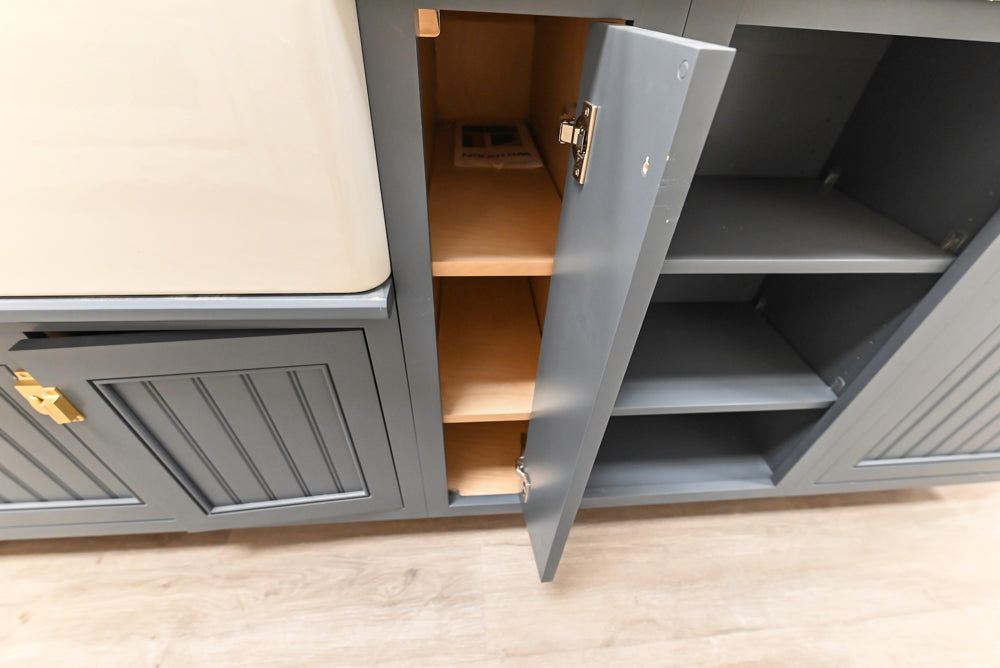 ALL KITCHEN SALES w/ included appliances ARE FINAL UPON SHIPMENT OR PICK-UP. No Refunds, Returns or Exchanges. All products are sold in their “As Is” condition. There are no warranties or representations of any kind or nature, express or implied, concerning the products sold, their condition, their fitness for a particular purpose, their merchantability, or with respect to a patent infringement or the like. The seller shall, in no event, be liable to the purchaser for any indirect, special, or consequential damage caused, directly or indirectly, by the products purchased, any inadequacy thereof for any purpose or any deficiency or defect therein, or the use or maintenance thereof, or any repairs, servicing or adjustments thereto. All risks of loss shall belong to the purchaser upon the purchase date. All items must be picked up, shipped or scheduled to accept delivery within 14 days of purchase, or the expected arrival date in the case of a “Purchase Before Removal”. If the above criteria are not met, items will be returned to stock, and customers will be issued store credit less a 15% restocking fee. If the order is canceled before delivery, a refund will be issued less a 15% restocking fee. Countertops are considered a complimentary value to be included with your purchase. Aurora does not assign value to countertops, backsplashes, or hoods due to their fragile nature. No refunds are available for broken or damaged stone, solid surface, and other countertops. Cabinetry may have pre-existing cutouts for electrical, plumbing, and/or gas connections on backs, sides, and/or toe kicks on cabinetry installed in showrooms and pre-owned. Molding and Trim may not be complete as pictured in the listing. (Often additional molding and trim is needed to complete retrofit). Backsplash tile, stone and other materials are not included in the purchase price of the kitchen.