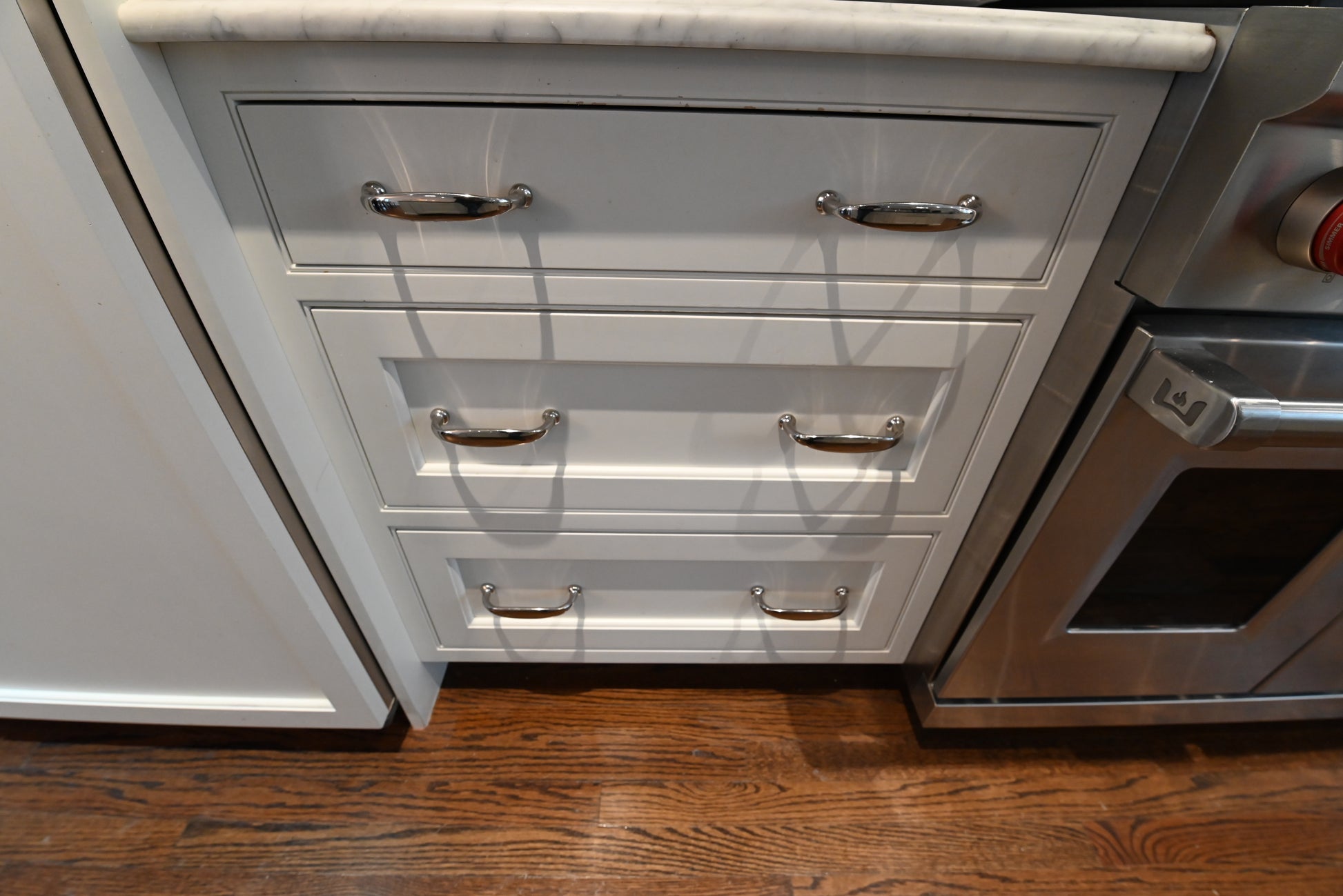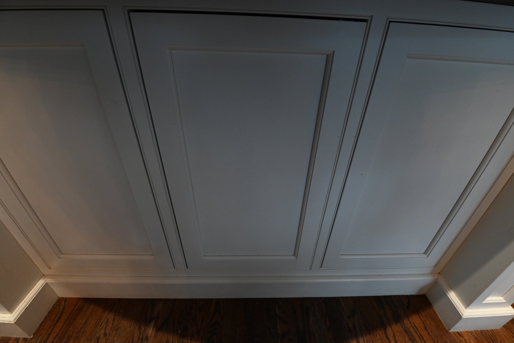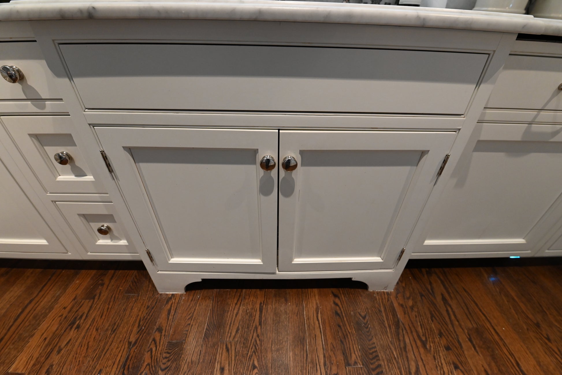 Sink Base, Cooktop Base, and Various Cabinets may have pre-existing cutouts for electrical, plumbing, and/or gas connections on backs, sides, and/or toe kicks on both kitchens installed in showrooms and on pre-owned. Molding and Trim may not be complete as pictured in the listing. (Often additional molding and trim is needed to complete retrofit). Backsplash tile, stone and other materials are not included in the purchase price of the kitchen.