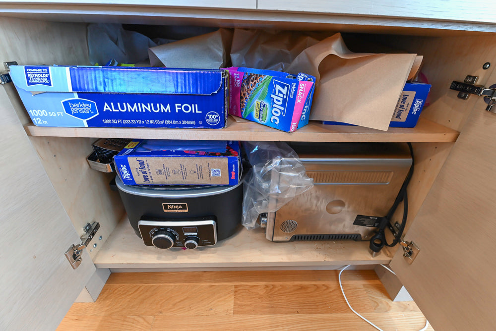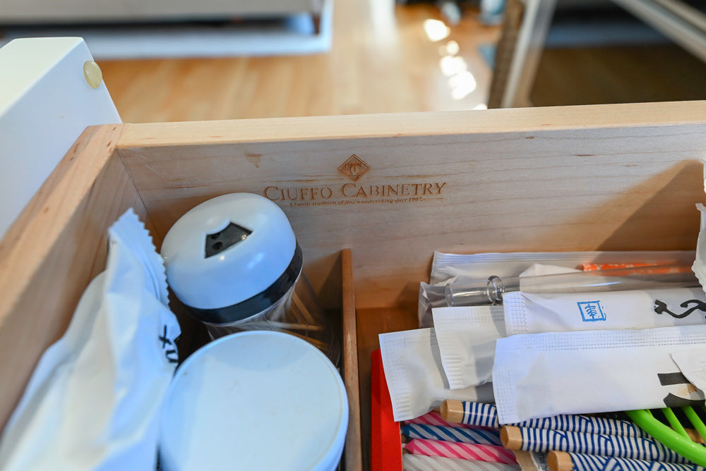 Please be aware that both showroom and pre-owned cabinetry will have pre-existing cut-outs. These openings for electrical, plumbing, and gas connections are commonly found on the backs, sides, and toe kicks of the units.