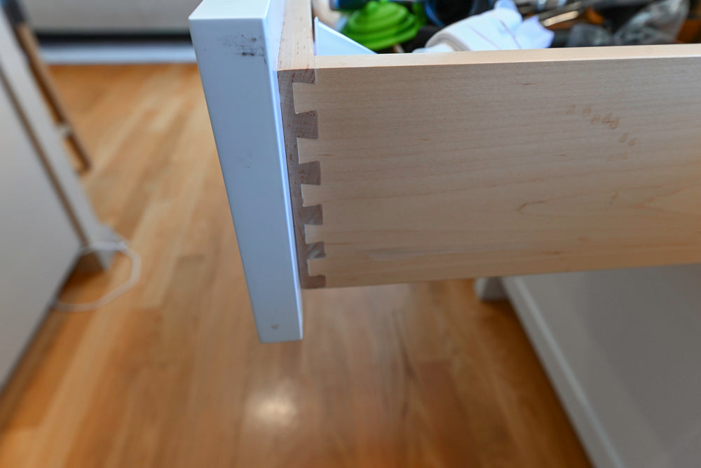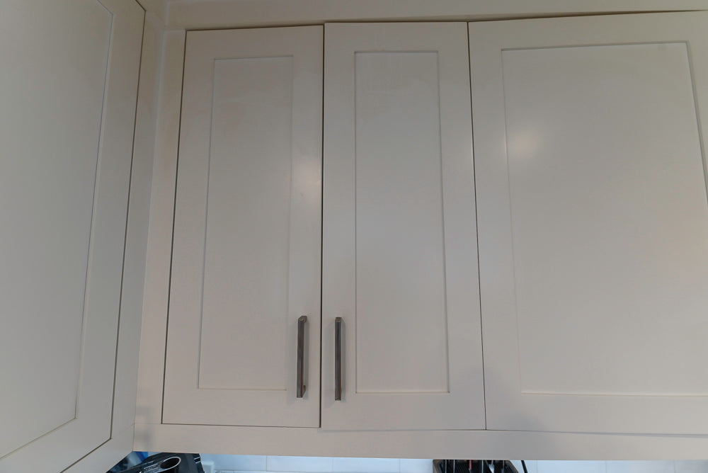If a kitchen was custom-painted on-site, you must plan for a full repaint. Because these kitchens were painted over the joints after installation, the paint film is broken during the disassembly process. To achieve a finished look, these cabinets must be repainted in place once re-installed, exactly as they were during the original installation.