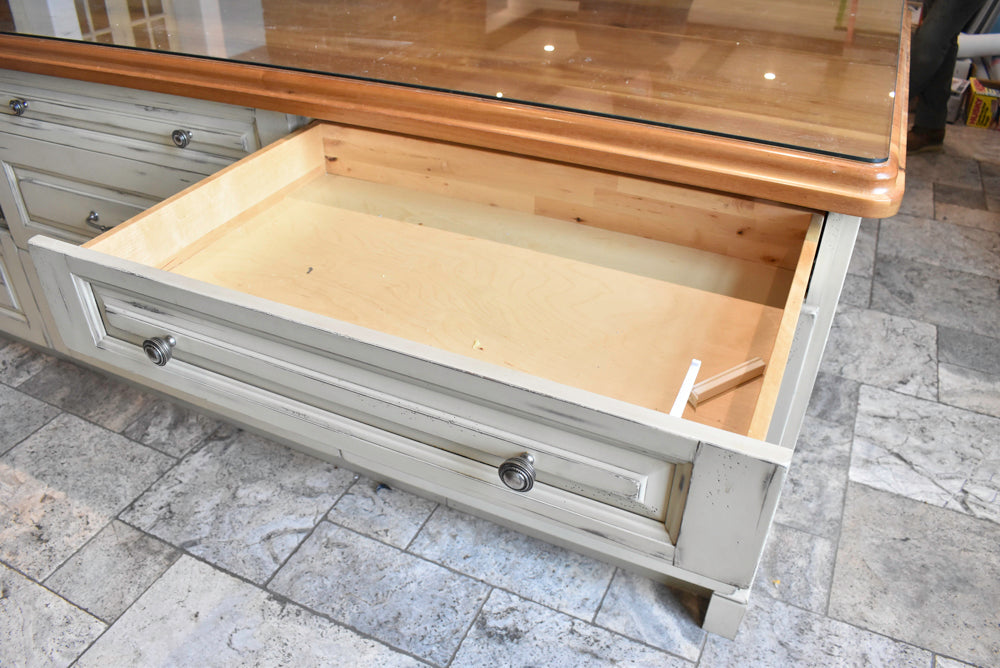 Rich in character and craftsmanship, this Custom Traditional Two-Tone Kitchen features beautifully distressed finishes that blend rustic charm with refined elegance. The rare double island layout offers exceptional prep and entertaining space, while premium stone countertops provide durability and visual depth. Outfitted with high-end Sub-Zero & Wolf appliances valued at nearly $56K, this kitchen delivers professional-grade performance in a timeless setting.