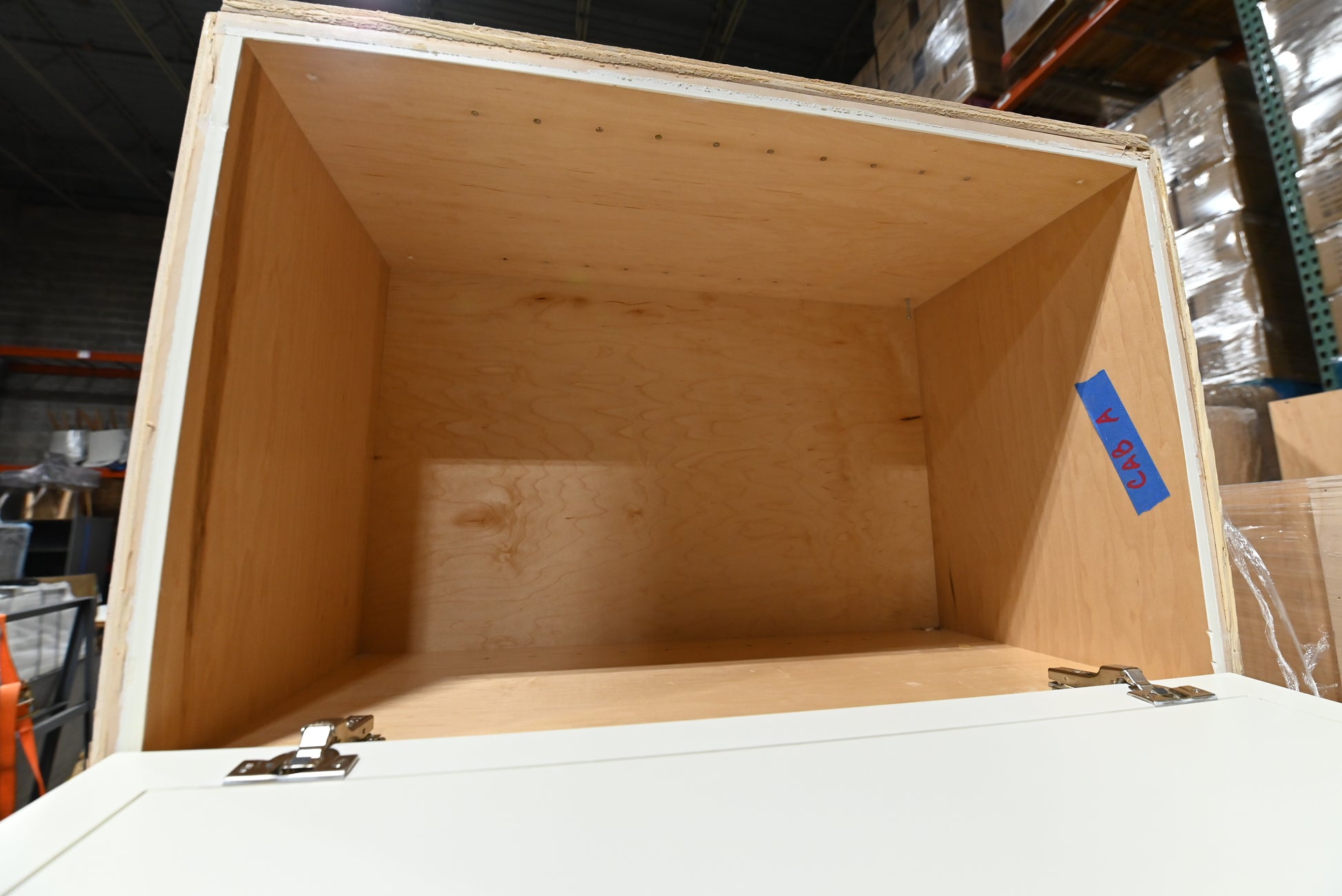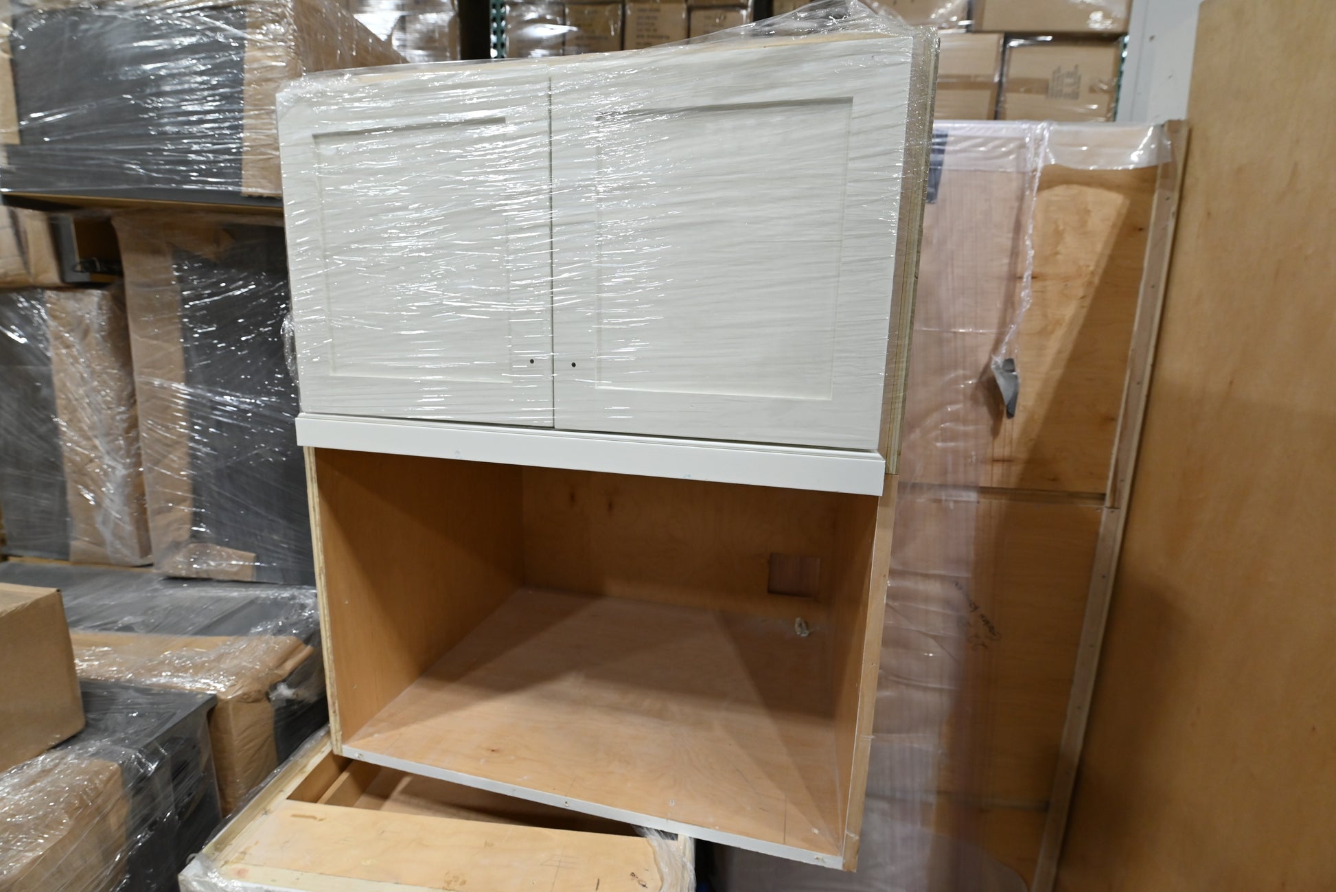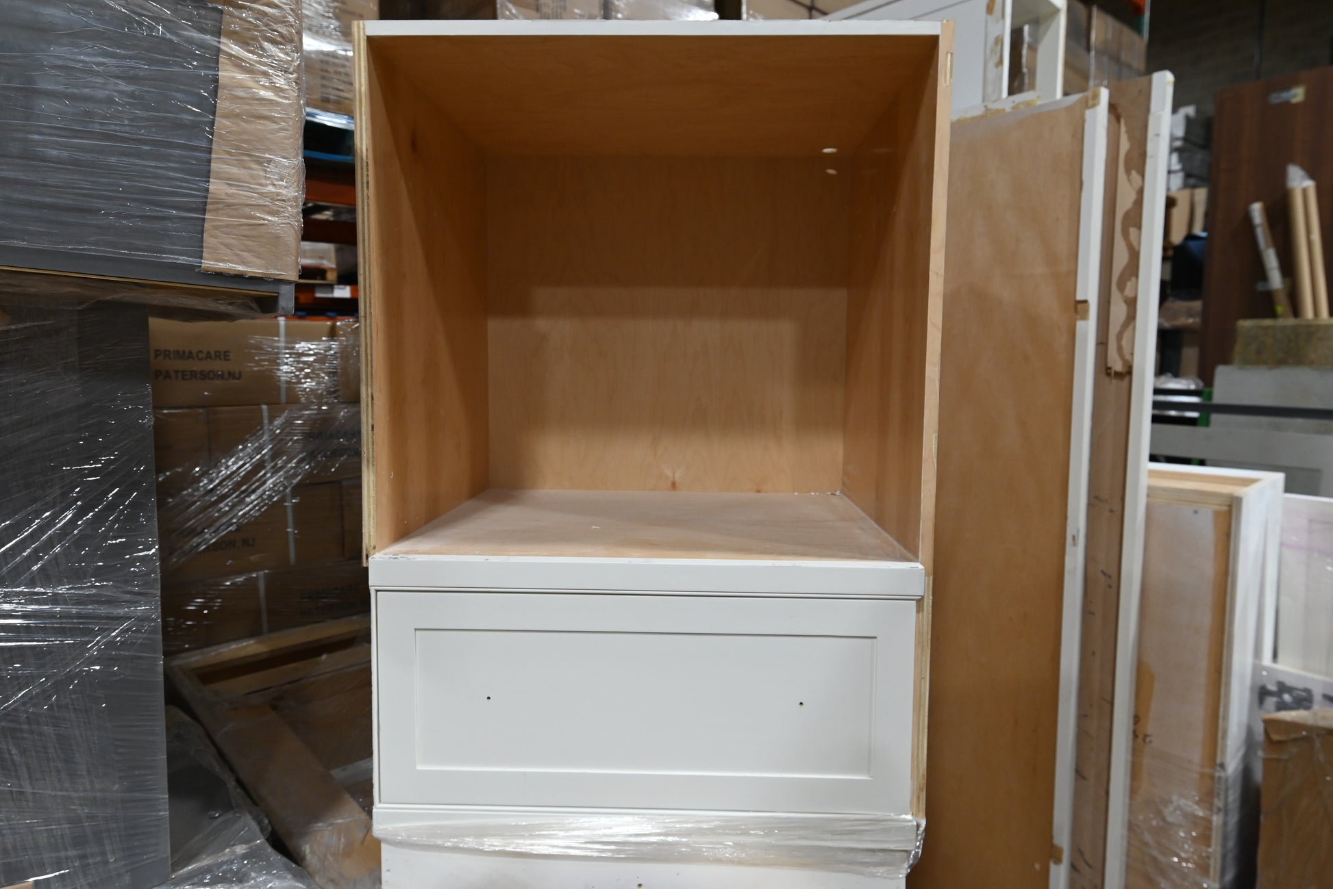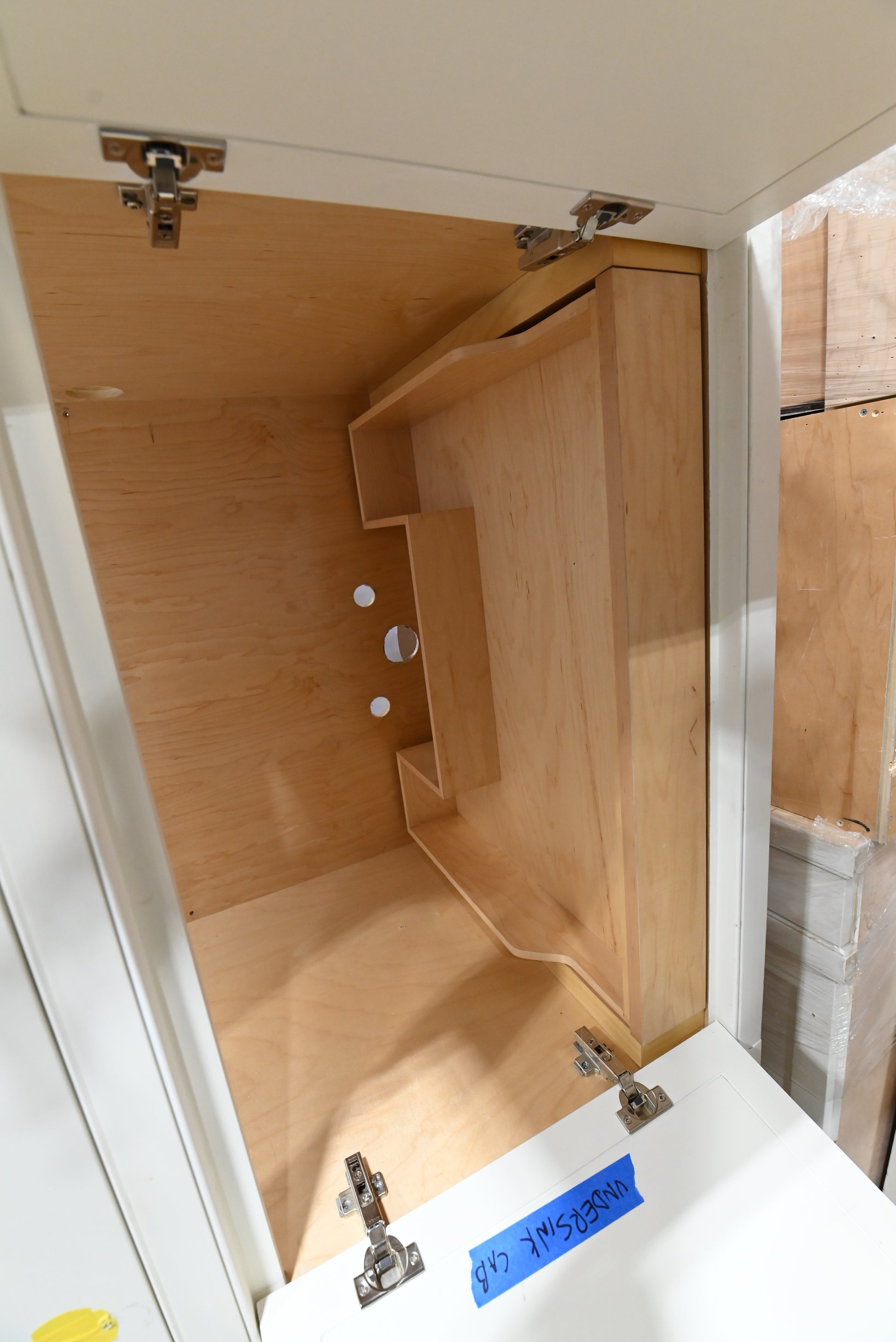 Please be aware that both showroom and pre-owned cabinetry will have pre-existing cut-outs. These openings for electrical, plumbing, and gas connections are commonly found on the backs, sides, and toe kicks of the units.