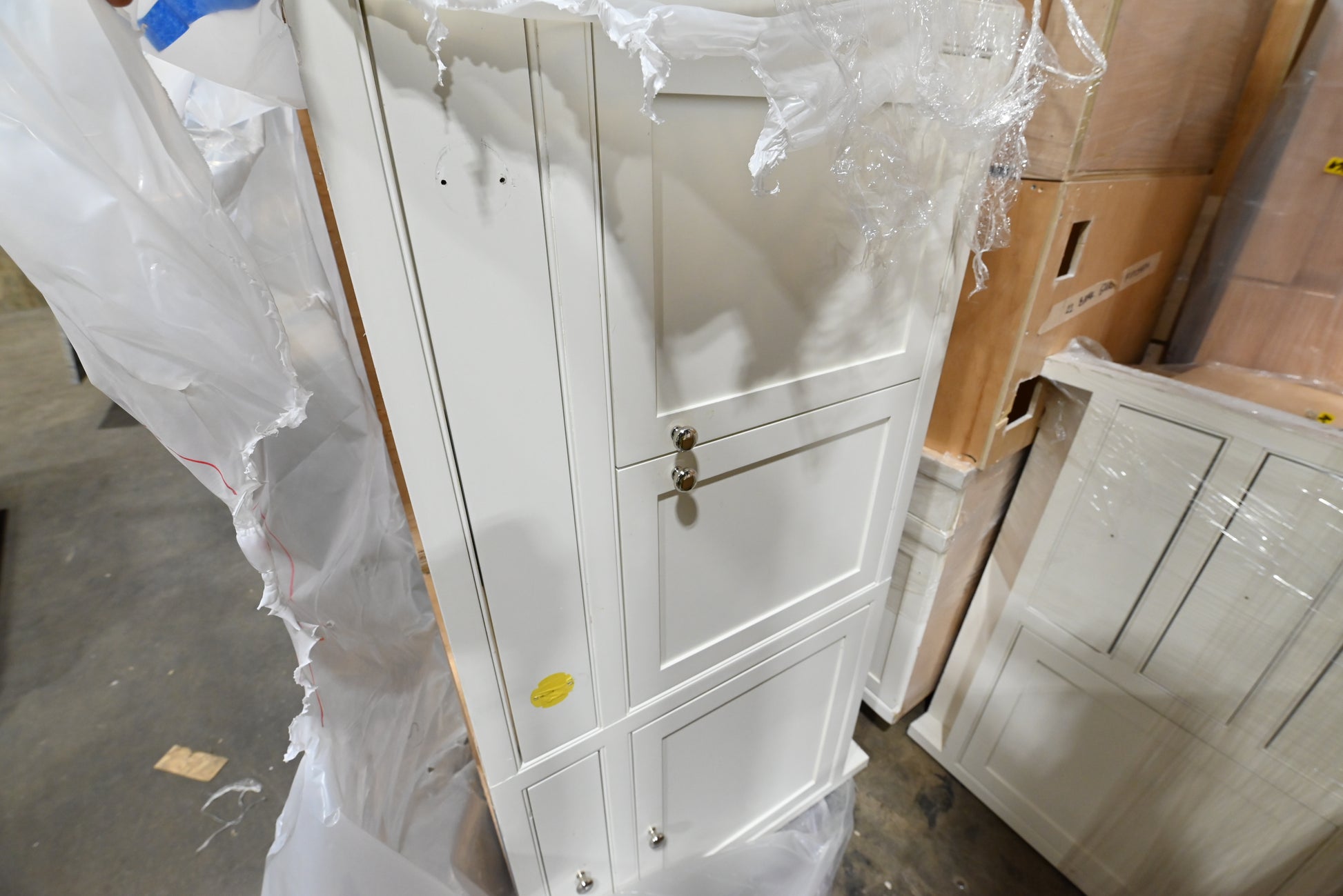This custom white cabinetry set offers a classic, sophisticated aesthetic that serves as a versatile foundation for any kitchen design. Featuring a clean white finish and traditional door profiles, this partial kitchen set is perfect for expanding an existing layout, outfitting a spacious laundry room, or creating a high-end pantry. The neutral palette and timeless construction ensure these pieces will integrate seamlessly into both modern-leaning and strictly traditional homes.