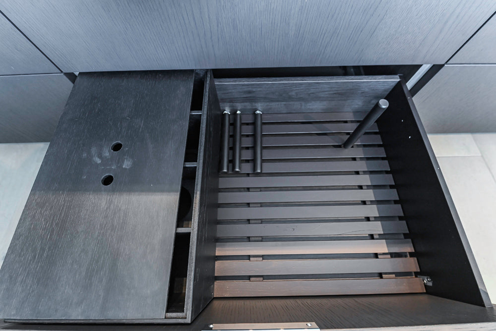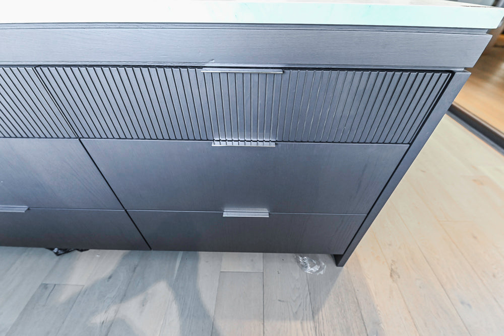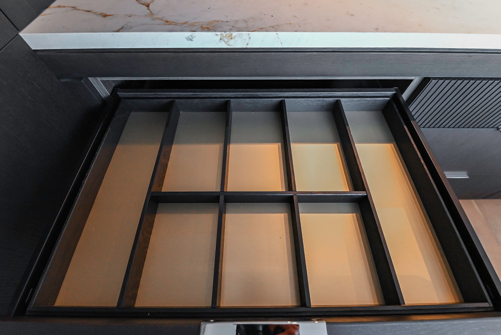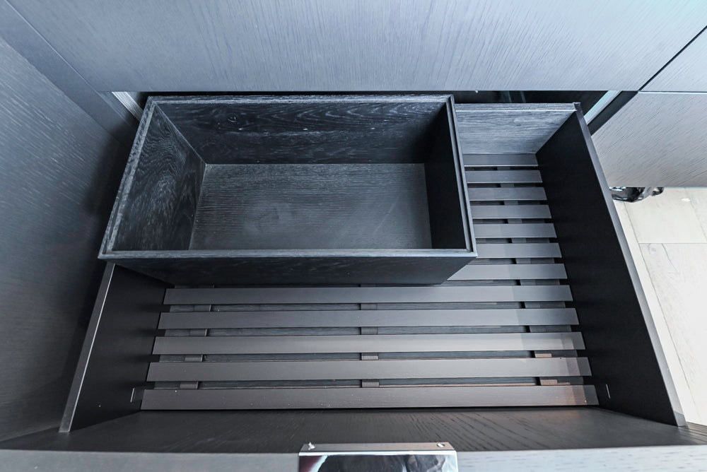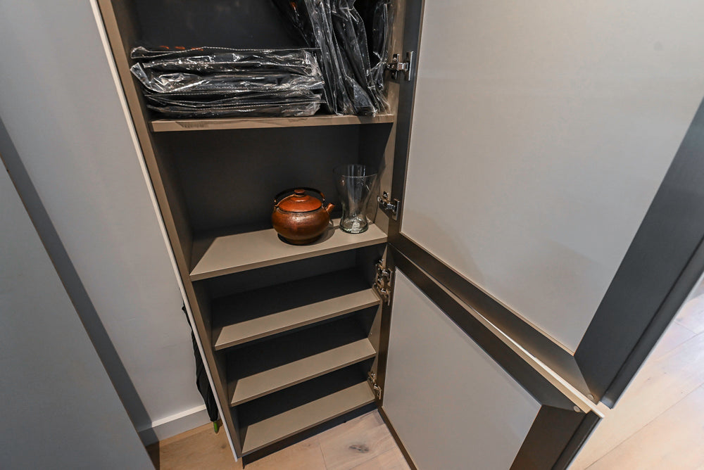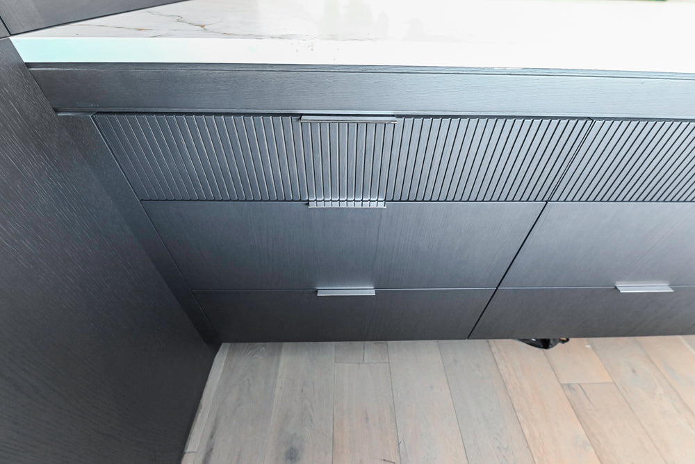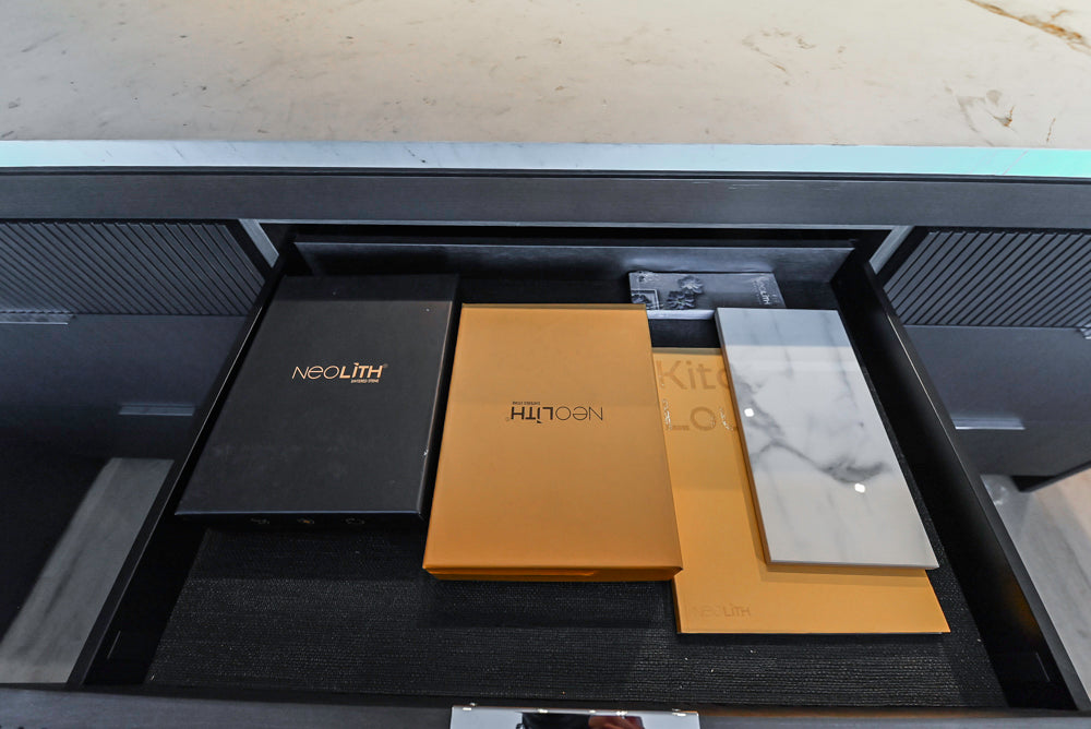 This DOCA Modern Classic Kitchen blends timeless warmth with sleek modern lines, featuring elegant brown wood veneer cabinetry and ultra-durable Neolith countertops. The refined grain of the veneer adds organic texture, while the minimalist design and high-performance surfaces make it as functional as it is beautiful.