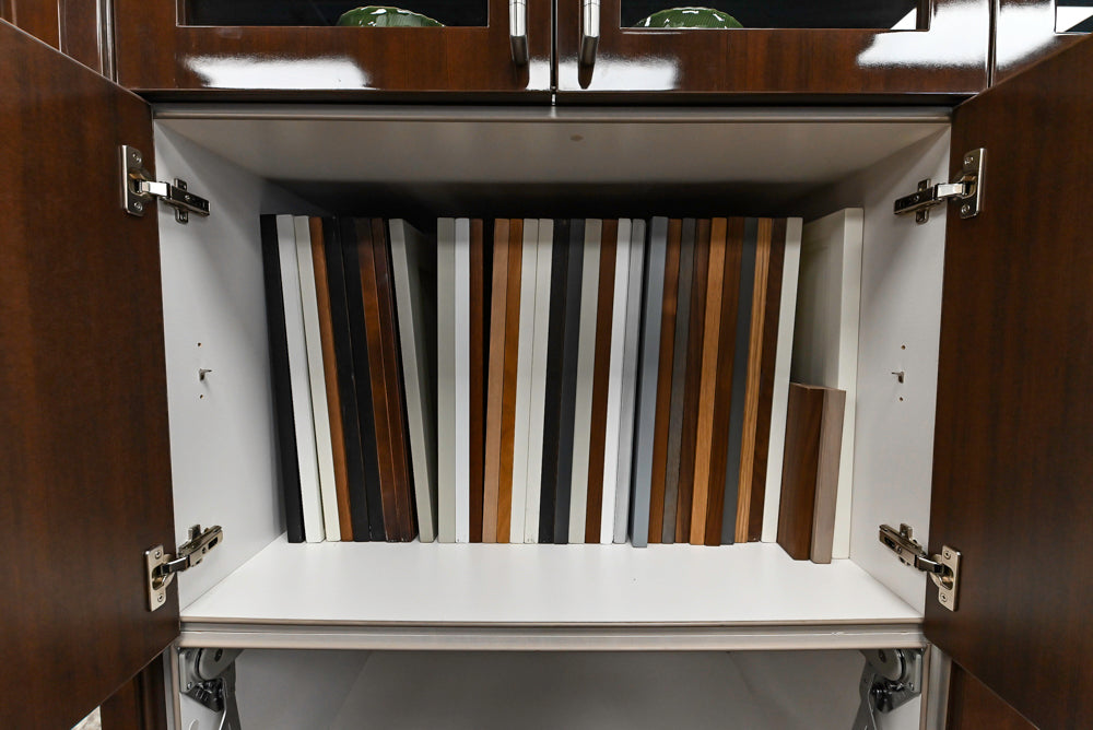 Step into a world of sleek sophistication with the Downsview Glossy Brown Modern Kitchen, where contemporary design meets high-end functionality. Featuring glossy brown cabinetry, this kitchen exudes a rich, luxurious aesthetic with its deep, warm tones and reflective surface that captures the light beautifully. The modern, streamlined design creates an inviting and polished atmosphere perfect for any home.