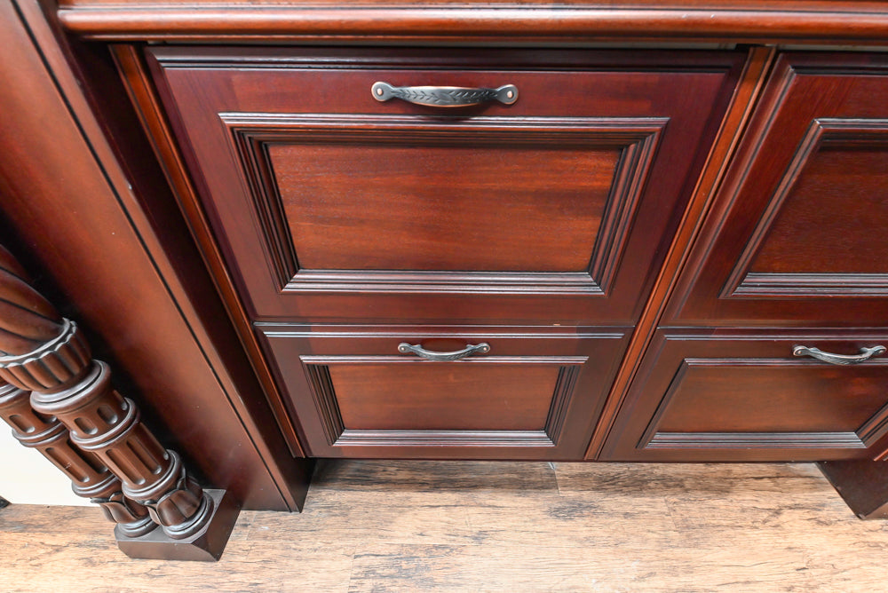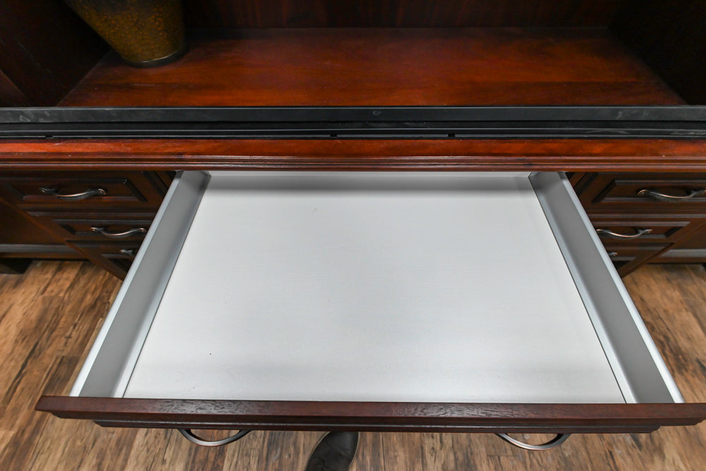 The library display shelves provide ample space to showcase your collection of books, decorative items, and personal treasures. Each shelf is designed to offer both functionality and style, while the traditional craftsmanship of the brown wood enhances the overall elegance of the piece. The added fireplace creates a focal point that invites relaxation and comfort, offering warmth on chilly evenings and a welcoming ambiance year-round.