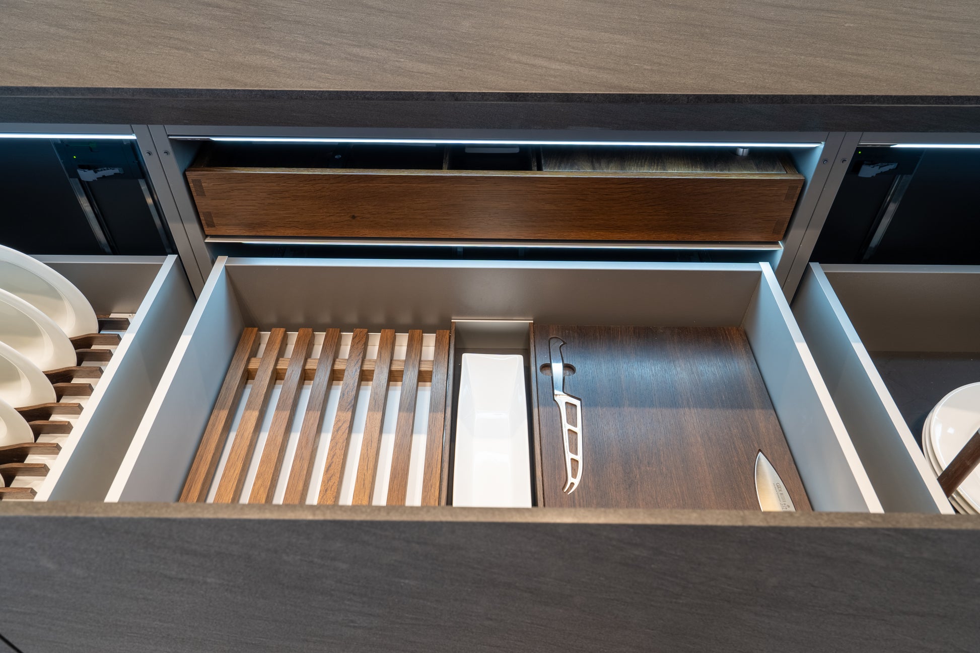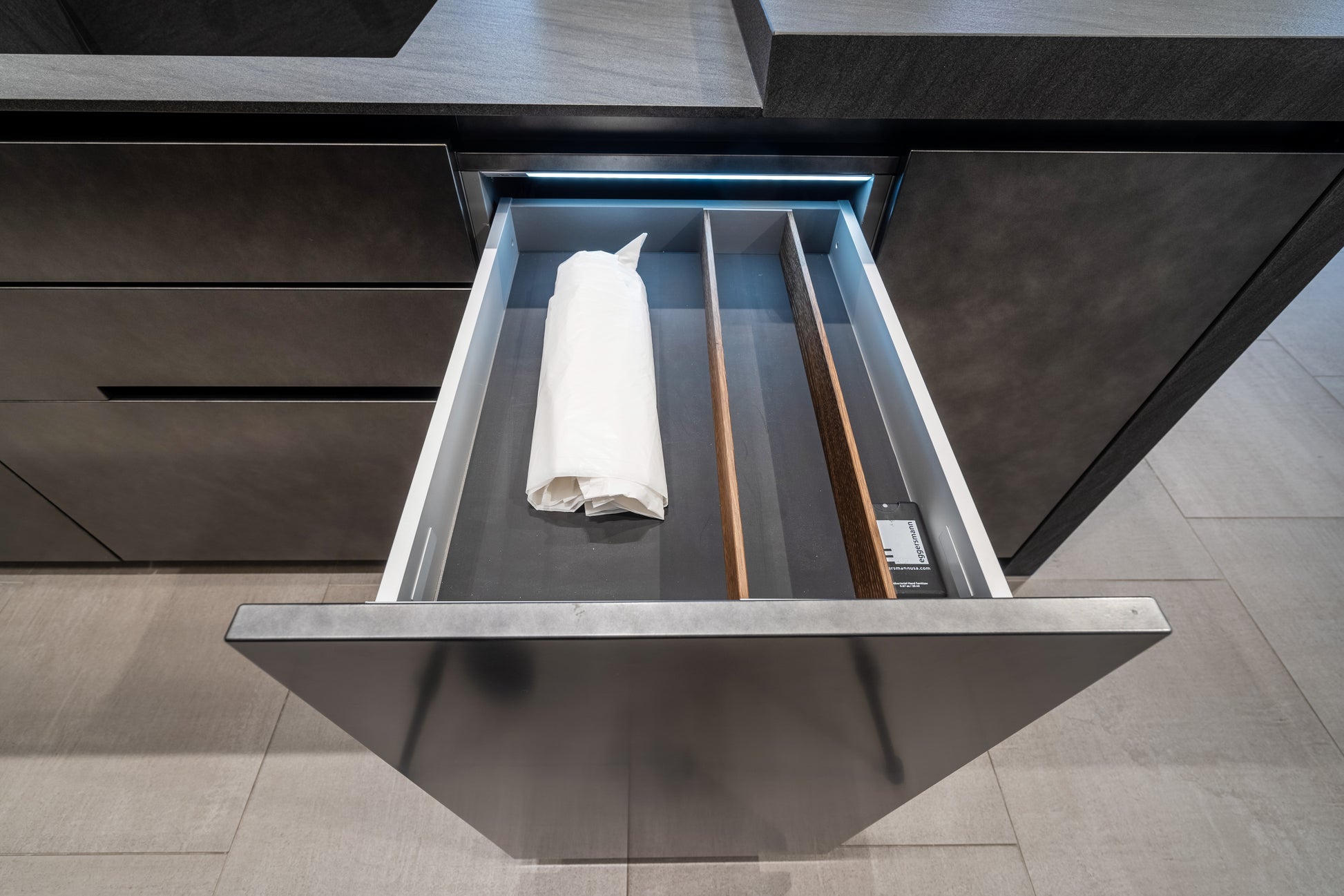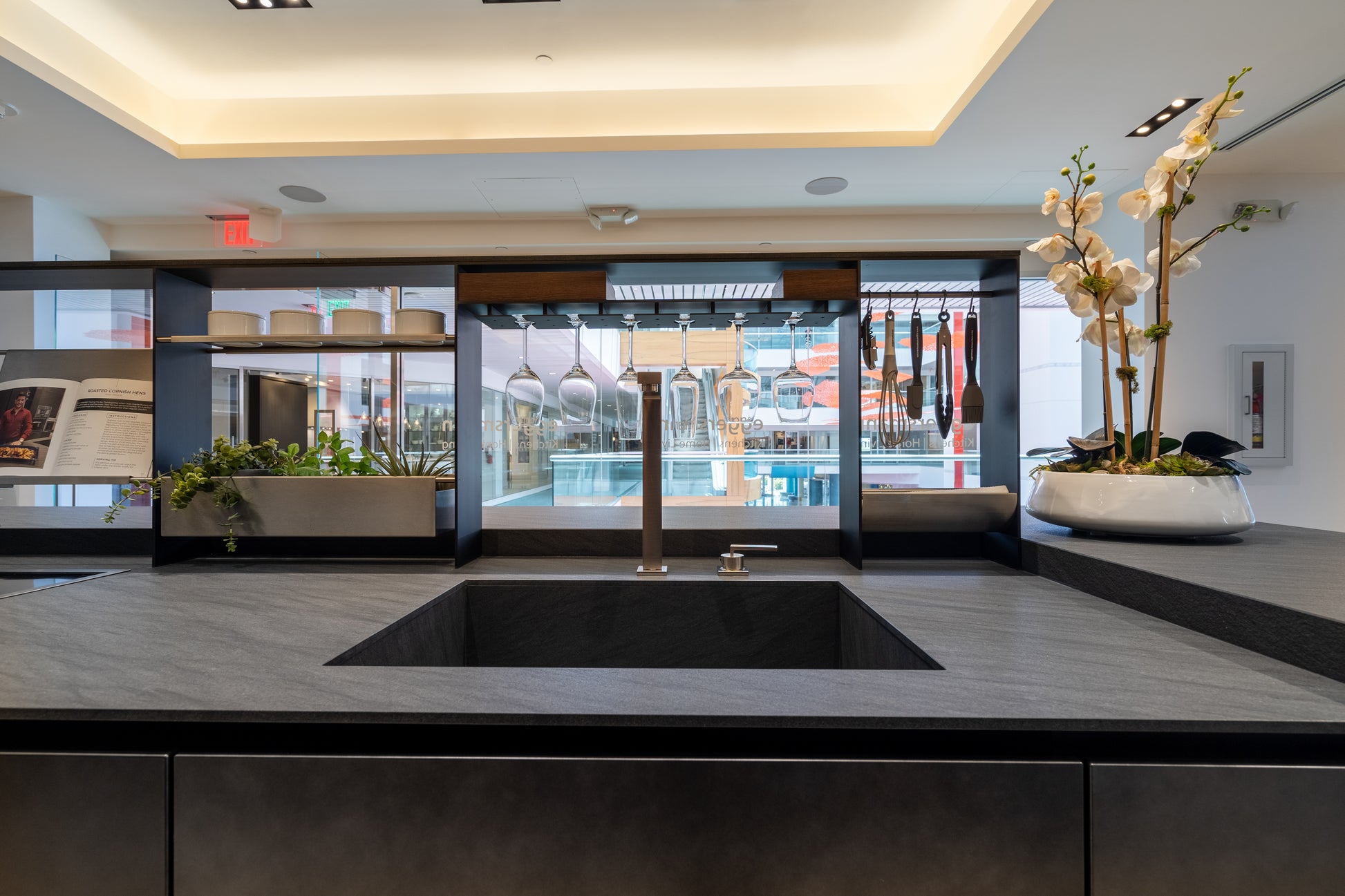 Sculptural elegance meets cutting-edge functionality in this eggersmann modern kitchen, featuring a refined mix of Glance Glass surfaces, a dramatic Carbono stone island, and rich Smoked Oak cabinetry. Designed with precision and intention, every element is crafted to elevate both form and performance.