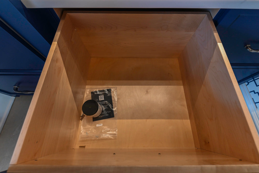 Elevate your home storage with the Gemcraft Navy Blue Pantry, a perfect blend of style and sophistication. Featuring a deep, rich navy finish that exudes modern elegance, this pantry is designed to make a bold statement while offering unbeatable organization and functionality. The white quartz countertops provide a pristine surface that complements the striking navy cabinetry, adding a touch of luxury to your kitchen or bar area.