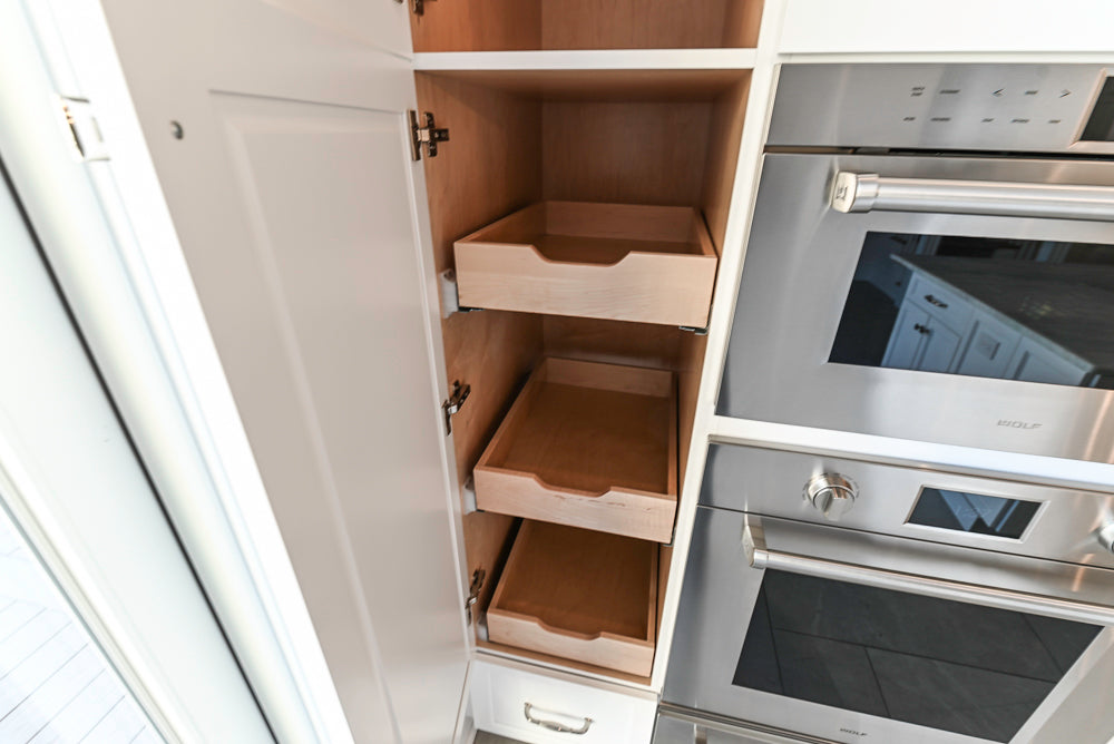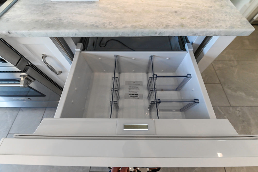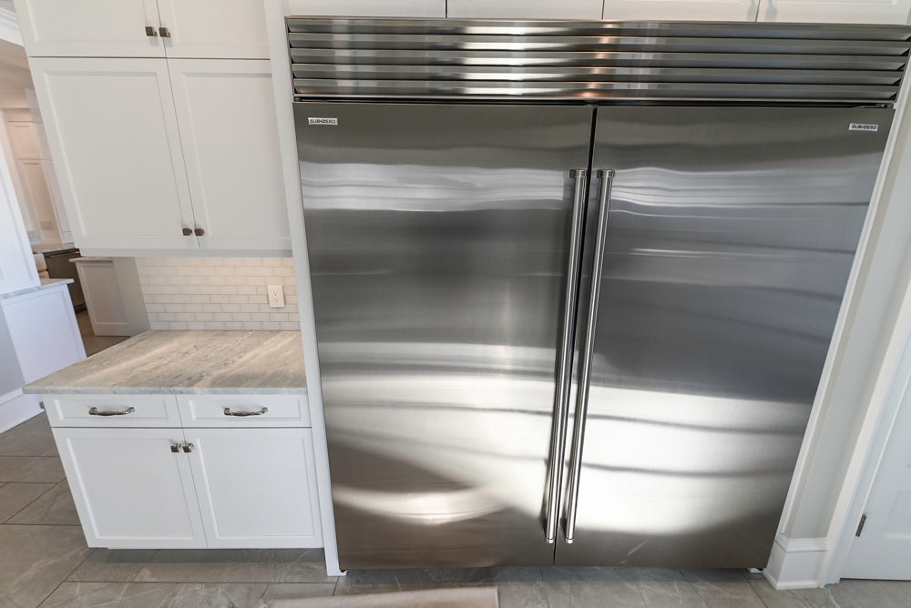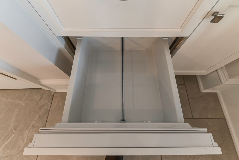 At the heart of this kitchen are two spacious islands, offering ample room for cooking, entertaining, and family gatherings. The double island design enhances both style and practicality, making it the ideal space for meal preparation and social interaction. The marble countertops, with their unique veining and natural elegance, add a touch of grandeur and are as durable as they are breathtaking.