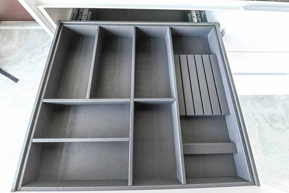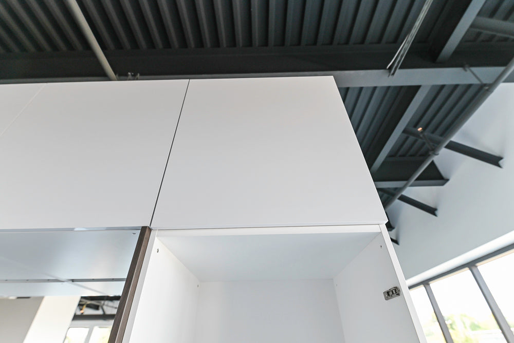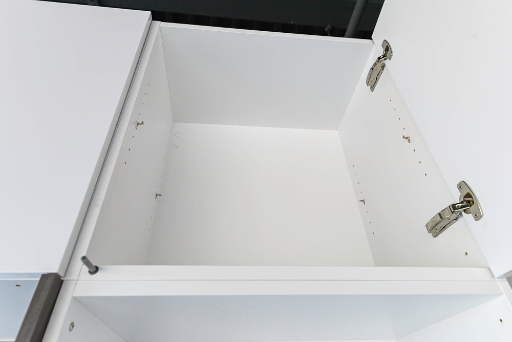 Bright, sleek, and contemporary, this Häcker kitchen showcases the timeless appeal of glossy white cabinetry paired with a bold black quartz countertop. Designed with minimalist lines and modern styling, it creates a clean, polished look that elevates any home.