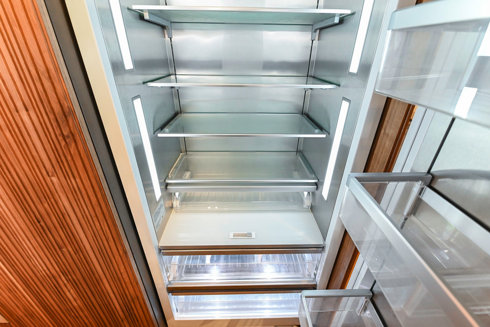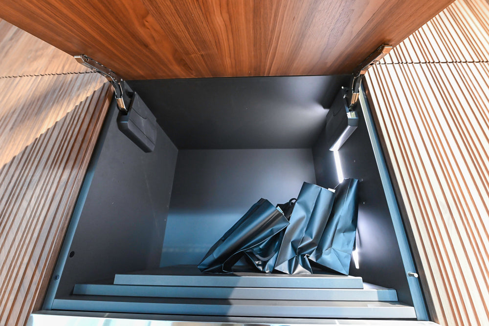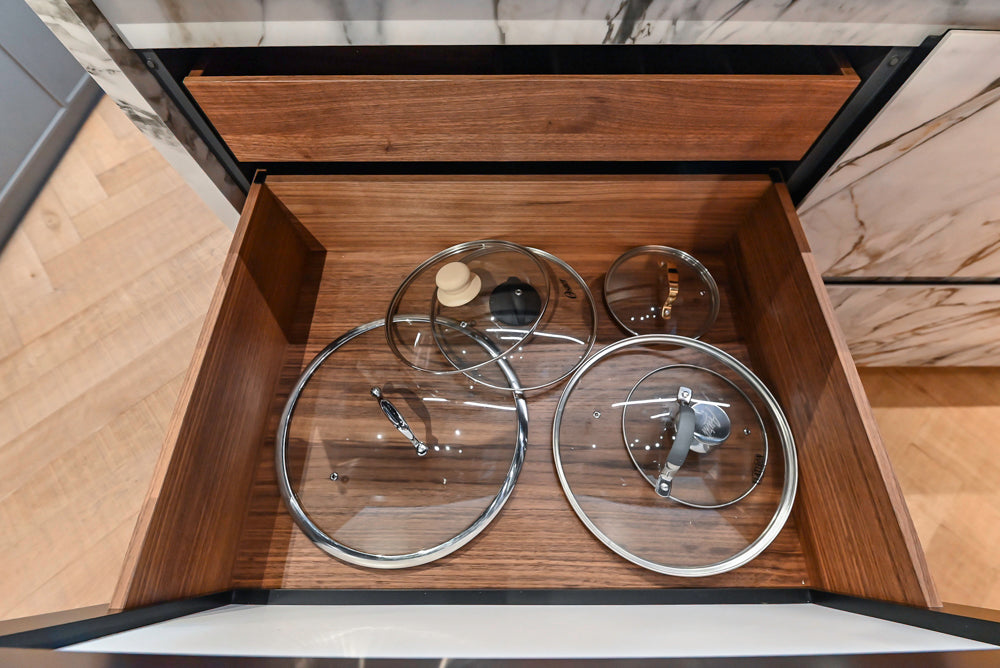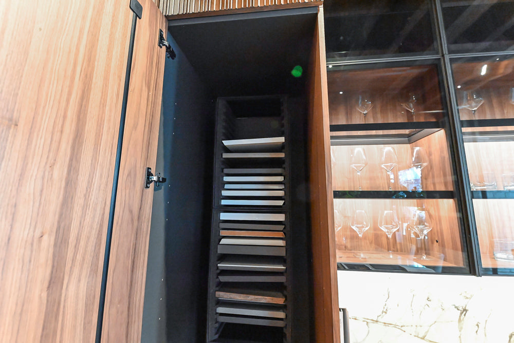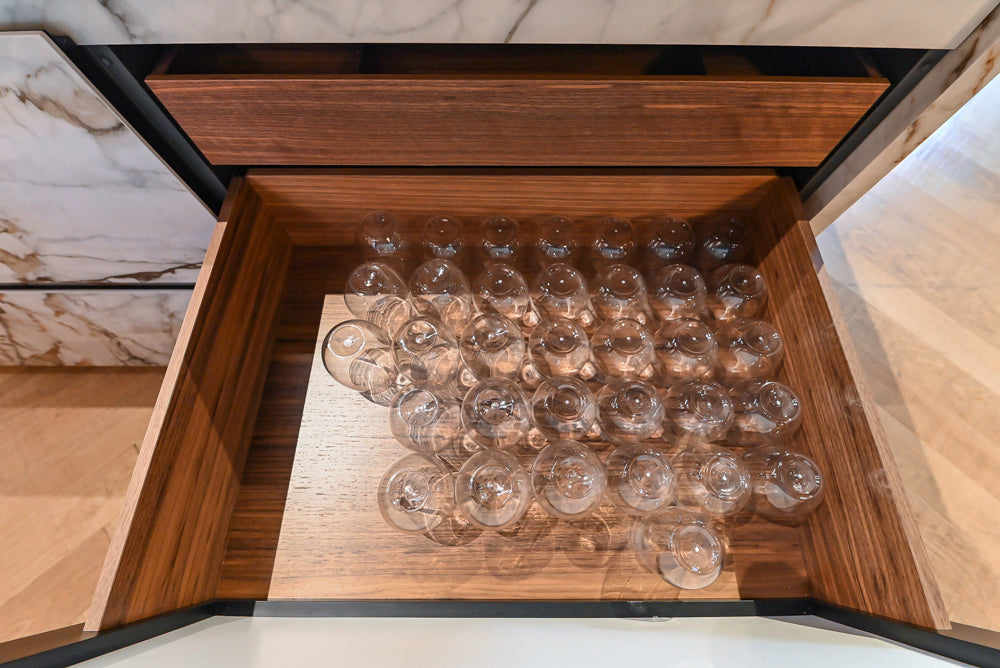 The integrated high-end appliances provide professional-grade performance while maintaining a seamless look. The expansive Neolith island serves as a stunning focal point—ideal for cooking, entertaining, or casual dining—while the durable stone surfaces ensure long-lasting beauty and functionality.