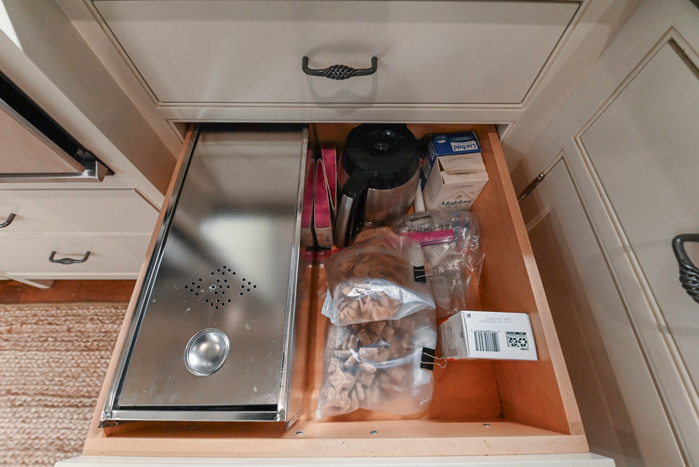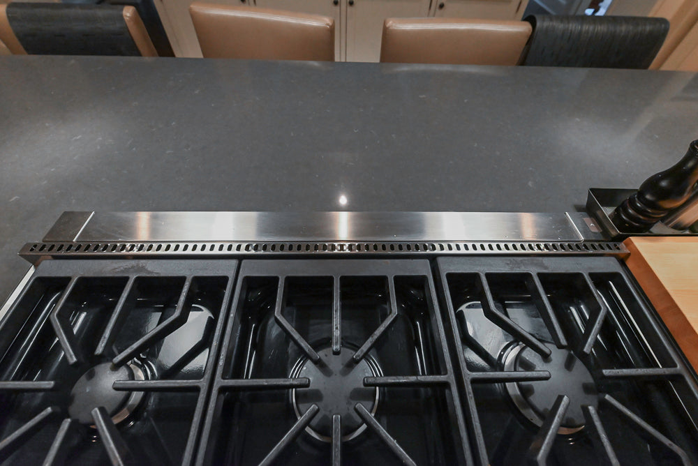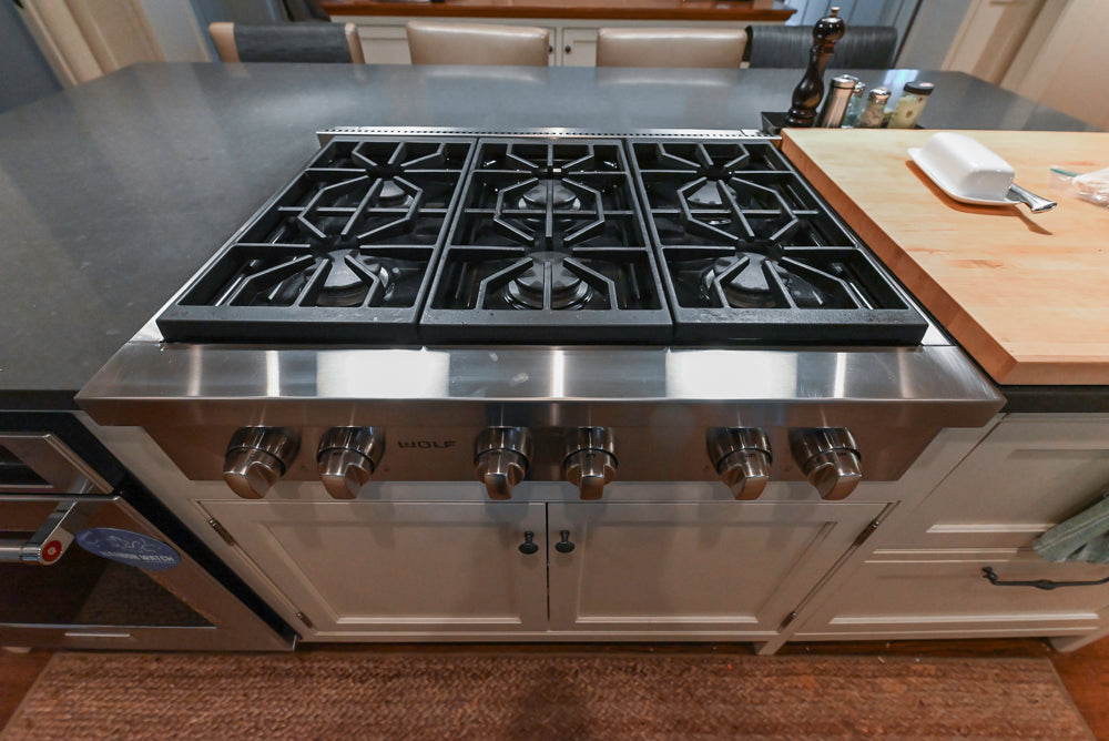 The stone countertops further elevate the kitchen, offering both beauty and durability. Whether you’re chopping, rolling, or entertaining, these countertops are as beautiful as they are functional.