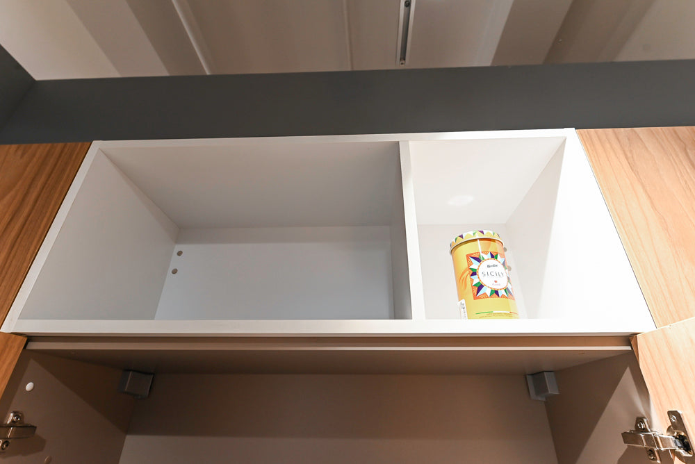 Silestone countertops elevate the design with a durable, easy-to-clean surface that stands up to everyday use while adding a polished finish. With thoughtful storage, integrated open shelving, and clean lines, this kitchenette balances functionality with refined contemporary design.