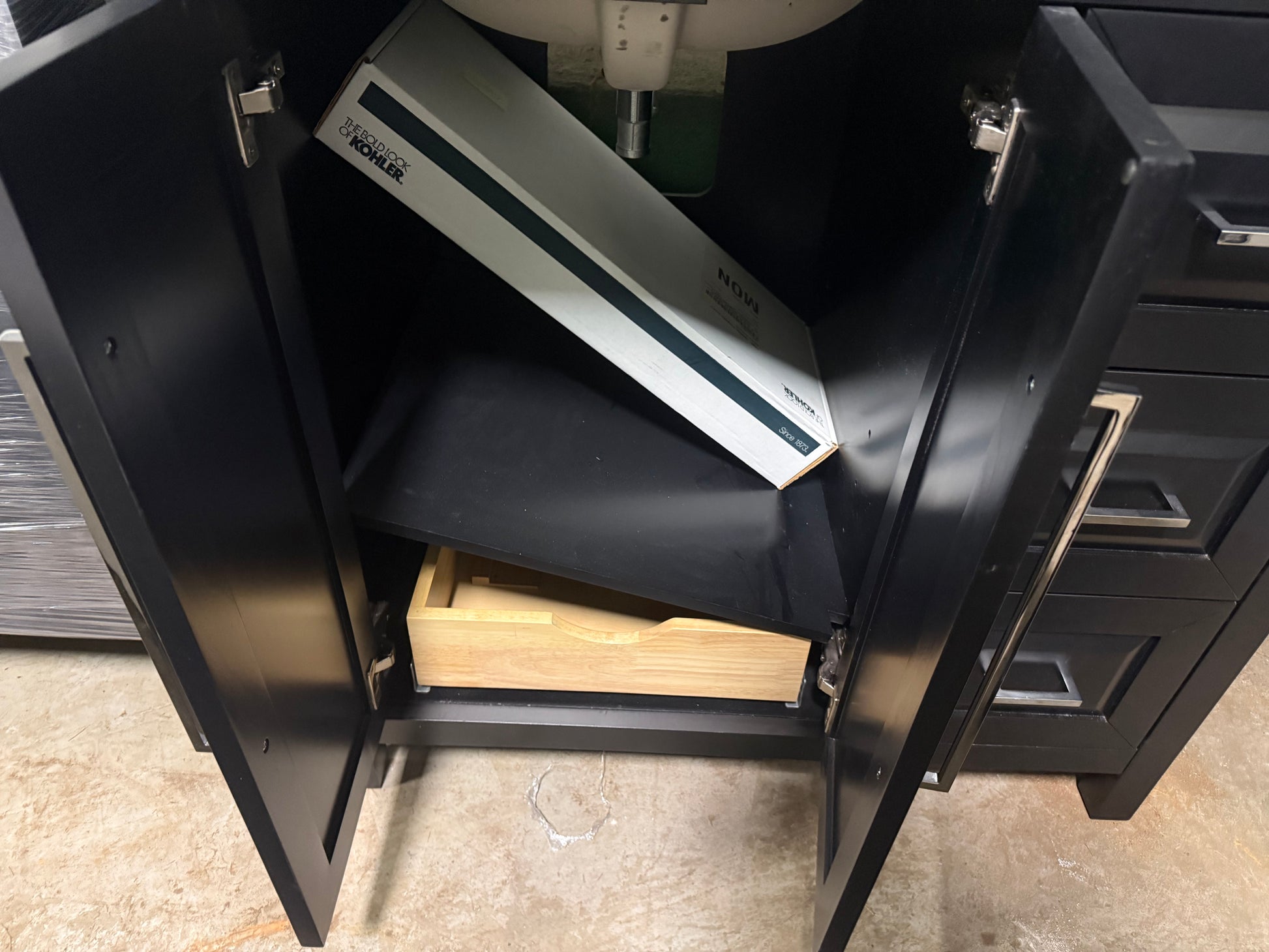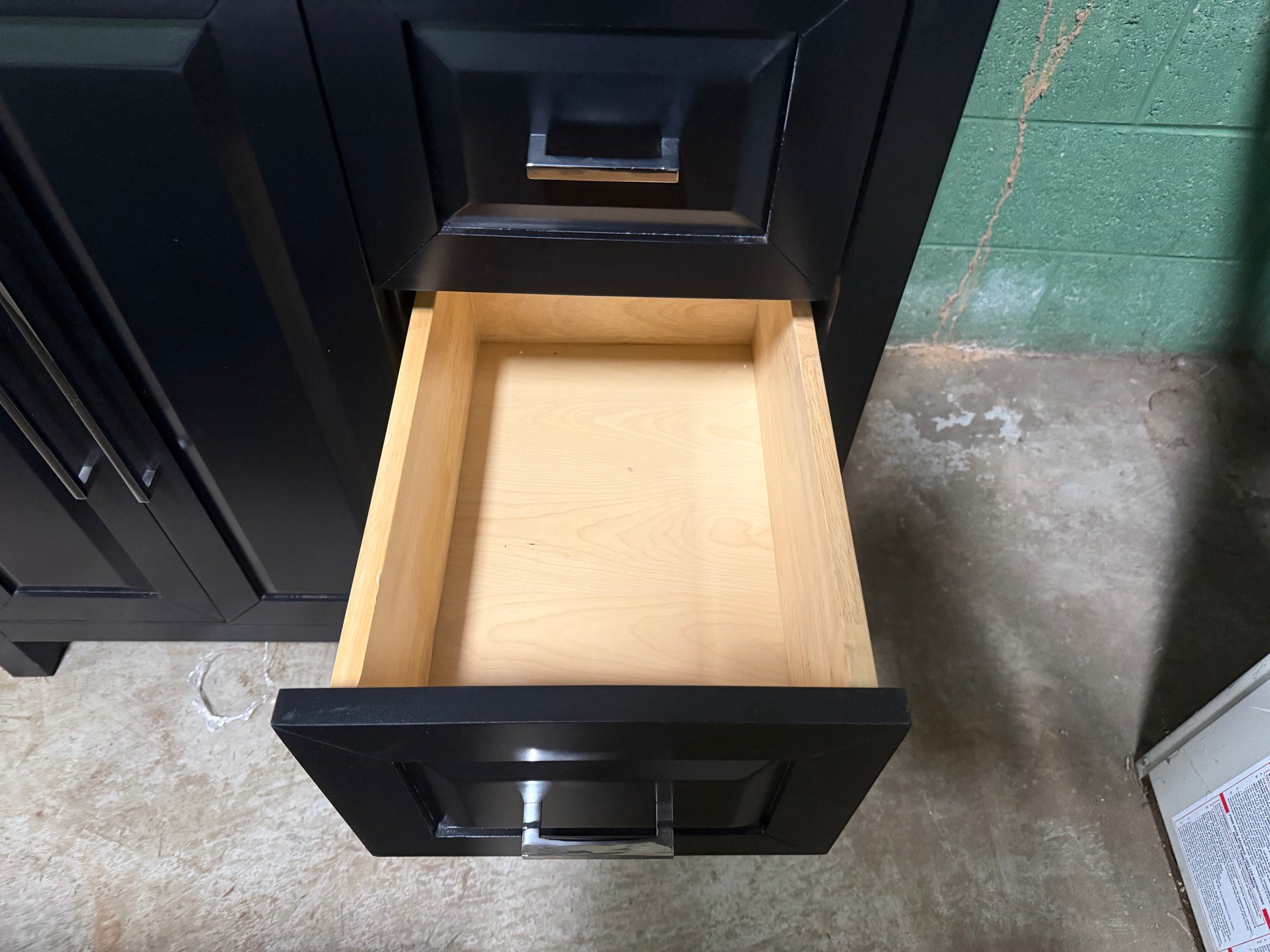 Please be aware that both showroom and pre-owned cabinetry will have pre-existing cut-outs. These openings for electrical, plumbing, and gas connections are commonly found on the backs, sides, and toe kicks of the units.