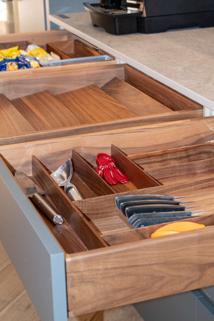 The Modern Matte Gray Kitchen with Rift Cut White Oak Island combines sleek contemporary design with warm, natural textures for a truly striking space. Matte gray cabinetry creates a sophisticated, understated backdrop, while the rift-cut white oak island adds organic warmth and visual interest, making it the perfect centerpiece for cooking and entertaining. Equipped with Wolf and Sub-Zero appliances, this kitchen delivers professional-level performance without compromising on style. Thoughtfully designed storage, expansive countertops, and a functional layout ensure that every meal prep or gathering is effortless and enjoyable.