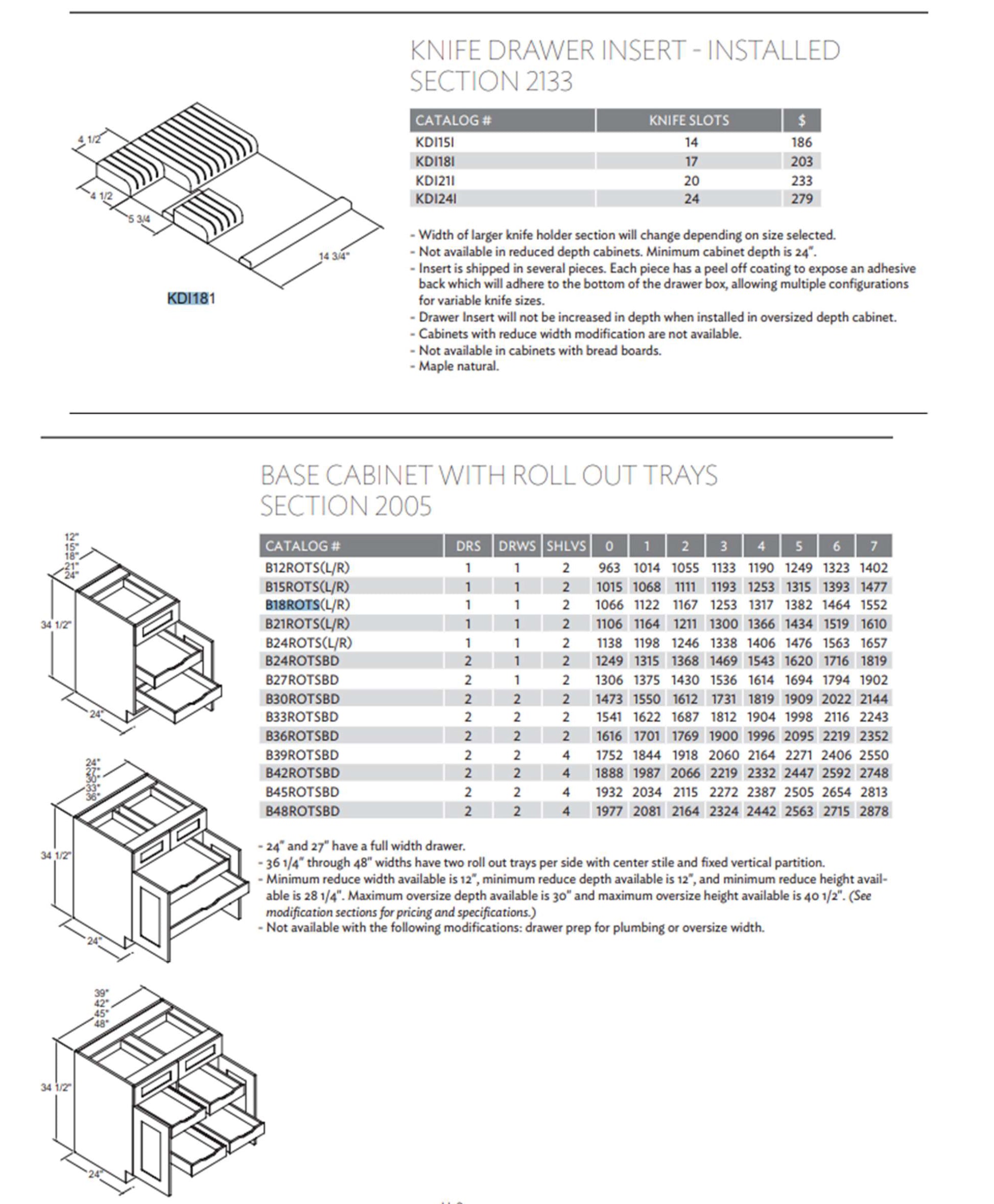 Thoughtfully designed for maximum utility, the perimeter cabinets boast an array of high-end organizational features, including soft-close pull-out trays, a precision-crafted knife insert, and corner Lazy Susans that make the most of every inch. A double wastebasket pull-out ensures seamless waste management, while a middle drawer outfitted with vertical posts keeps larger items neatly separated. Top drawers are fitted with elegant cutlery dividers for effortless organization.