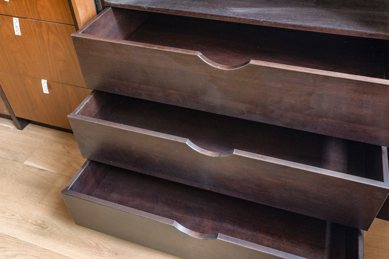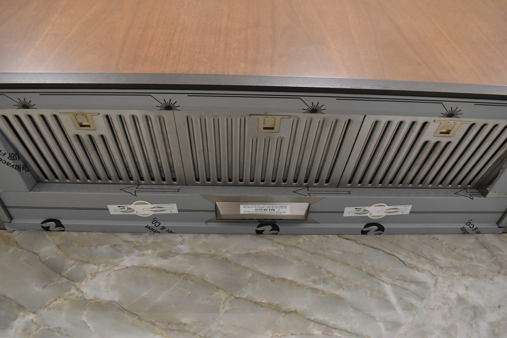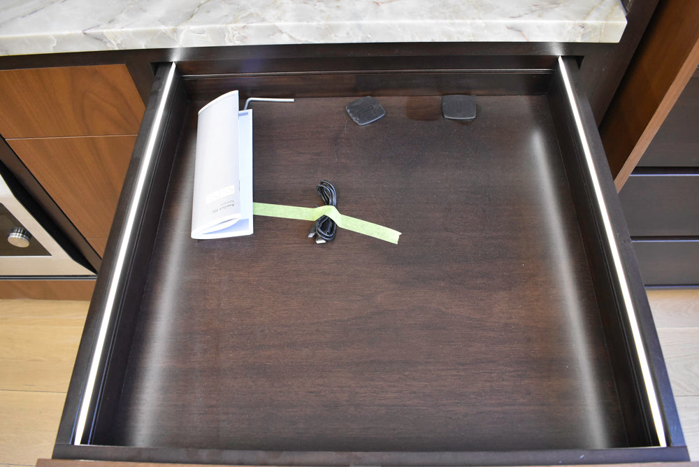 Please be aware that both showroom and pre-owned cabinetry will have pre-existing cut-outs. These openings for electrical, plumbing, and gas connections are commonly found on the backs, sides, and toe kicks of the units.