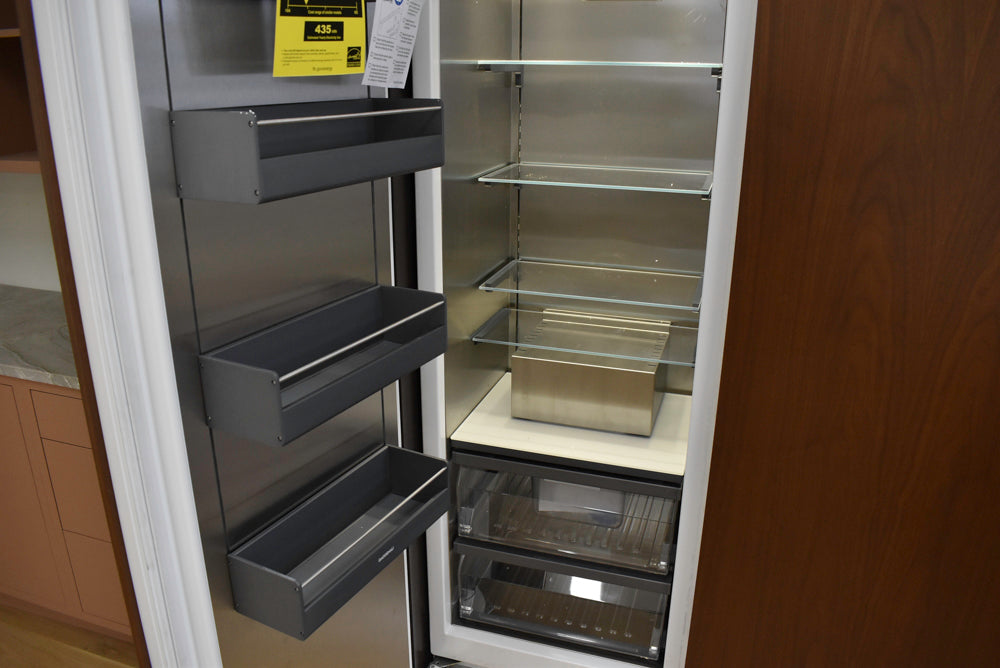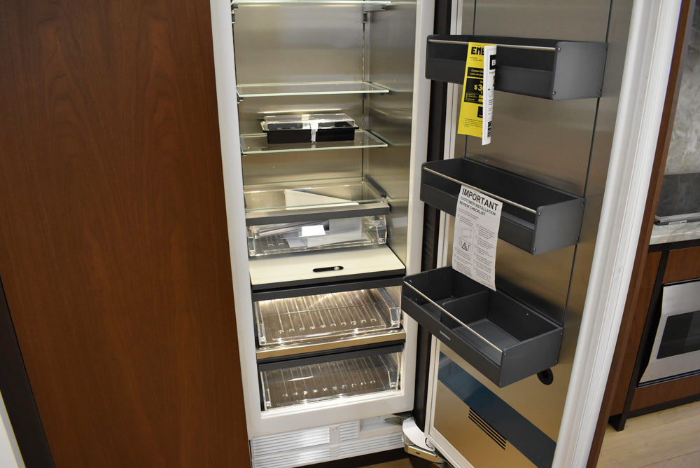 Additionally, internal appliance accessories—such as milk containers, water pitchers, and specialized shelving—are often not included in the sale. You should plan to source these specific manufacturer parts or trim kits to fit your new layout. If you have questions about whether a specific component is included, please reach out to us before purchasing.