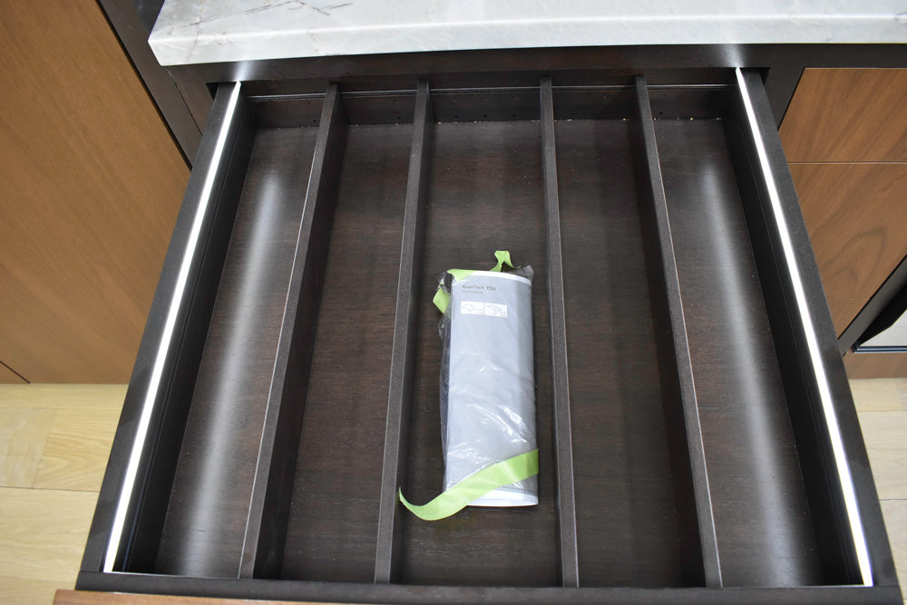 All kitchen components are sold strictly "as-is" regarding their configuration and fit. Please be aware that in showroom displays, components like sinks, cooktops, and appliances may be fitted into custom-cut openings that do not follow standard residential sizing.
