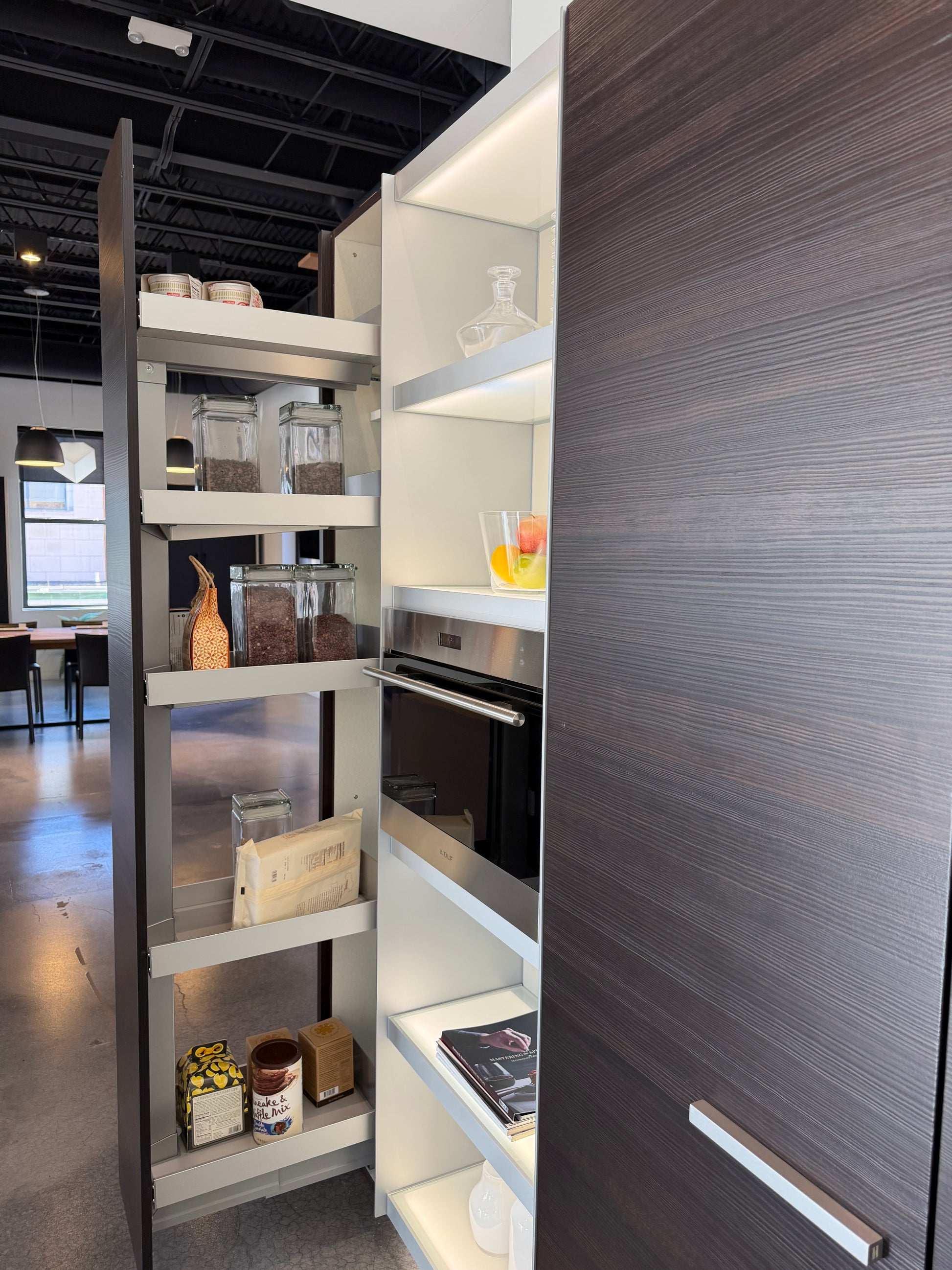 Make a bold design statement with this Poggenpohl Plus Modo modern kitchen, featuring a striking black and white palette paired with clean architectural lines. Designed for both visual impact and everyday performance, this kitchen centers around a sleek island that enhances workflow while creating a dramatic focal point for entertaining.