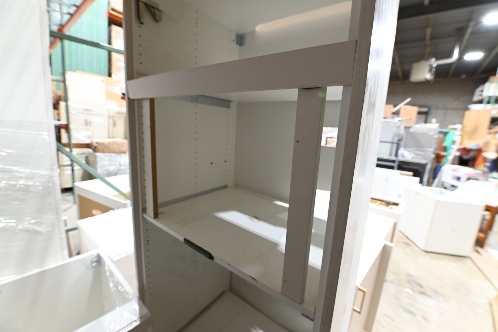 ALL KITCHEN SALES w/ included appliances ARE FINAL UPON SHIPMENT OR PICK-UP. No Refunds, Returns or Exchanges. All products are sold in their “As Is” condition. There are no warranties or representations of any kind or nature, express or implied, concerning the products sold, their condition, their fitness for a particular purpose, their merchantability, or with respect to a patent infringement or the like. The seller shall, in no event, be liable to the purchaser for any indirect, special, or consequential damage caused, directly or indirectly, by the products purchased, any inadequacy thereof for any purpose or any deficiency or defect therein, or the use or maintenance thereof, or any repairs, servicing or adjustments thereto. All risks of loss shall belong to the purchaser upon the purchase date. All items must be picked up, shipped or scheduled to accept delivery within 14 days of purchase, or the expected arrival date in the case of a “Purchase Before Removal”. If the above criteria are not met, items will be returned to stock, and customers will be issued store credit less a 15% restocking fee. If the order is canceled before delivery, a refund will be issued less a 15% restocking fee. Countertops are considered a complimentary value to be included with your purchase. Aurora does not assign value to countertops, backsplashes, or hoods due to their fragile nature. No refunds are available for broken or damaged stone, solid surface, and other countertops. Cabinetry may have pre-existing cutouts for electrical, plumbing, and/or gas connections on backs, sides, and/or toe kicks on cabinetry installed in showrooms and pre-owned. Molding and Trim may not be complete as pictured in the listing. (Often additional molding and trim is needed to complete retrofit). Backsplash tile, stone and other materials are not included in the purchase price of the kitchen.