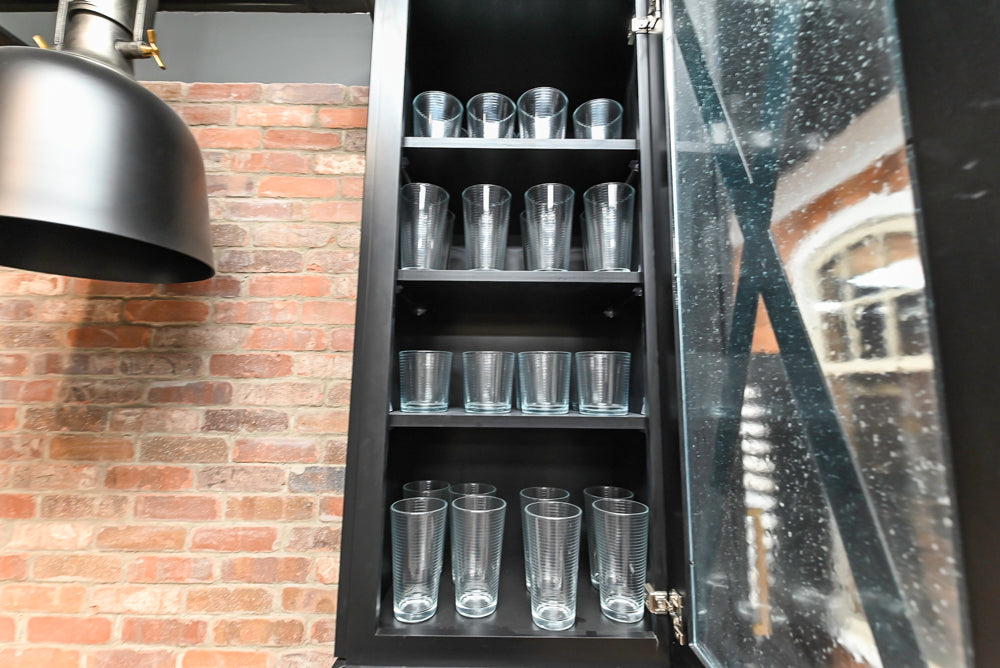 This stunning design blends the sleek sophistication of black cabinetry with the crisp contrast of white accents, creating a striking and modern aesthetic. The industrial-inspired finishes add an urban edge to this space, making it perfect for those who appreciate a chic yet functional kitchen.