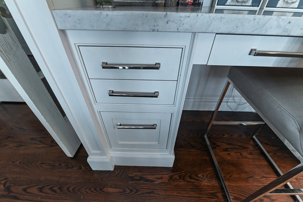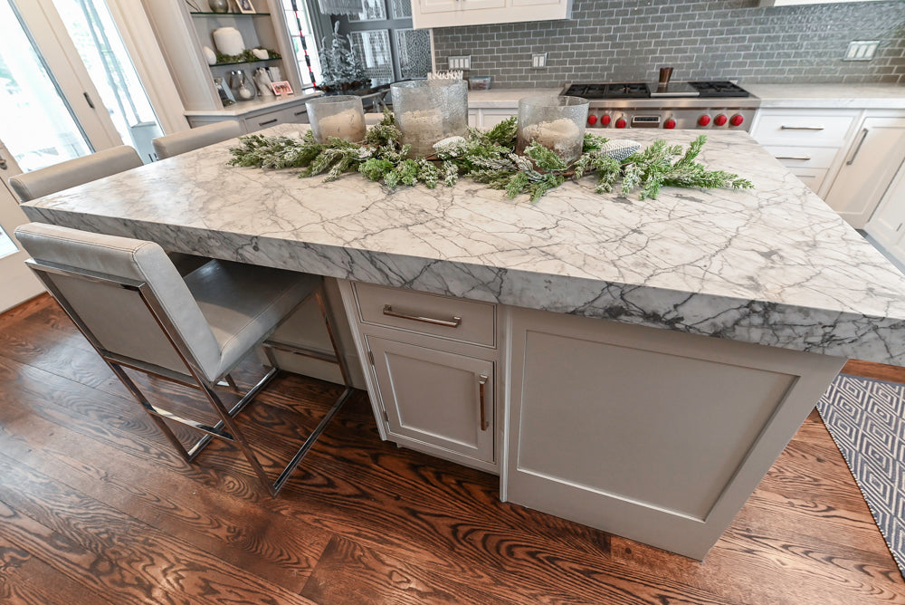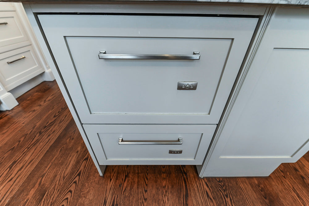 Elevate your home with “The Clarendon” Transitional White & Grey Kitchen, a beautifully balanced design that blends timeless elegance with modern functionality. Crisp white cabinetry pairs effortlessly with soft grey accents, creating a refined, welcoming aesthetic. Anchored by a generous kitchen island, this layout offers superb workflow for meal prep, entertaining, and everyday living.